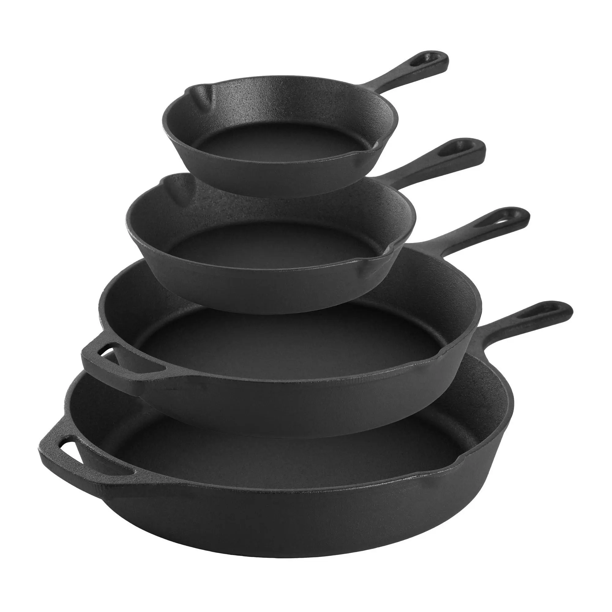 From stove to campfire, this MegaChef 14-piece cast iron skillet set handles all your cooking needs. Equipped with four different-sized skillets and tempered glass lids, it ensures even heat distribution for grilling, frying, and roasting. The silicone holders and scrapers make handling and cleaning a breeze. From MegaChef.