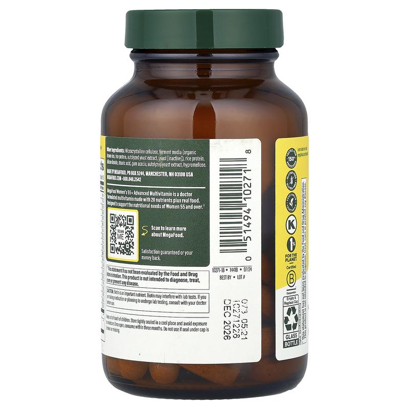 5. MegaFood Women's 55+ Advanced Multivitamin, 60 Tablets