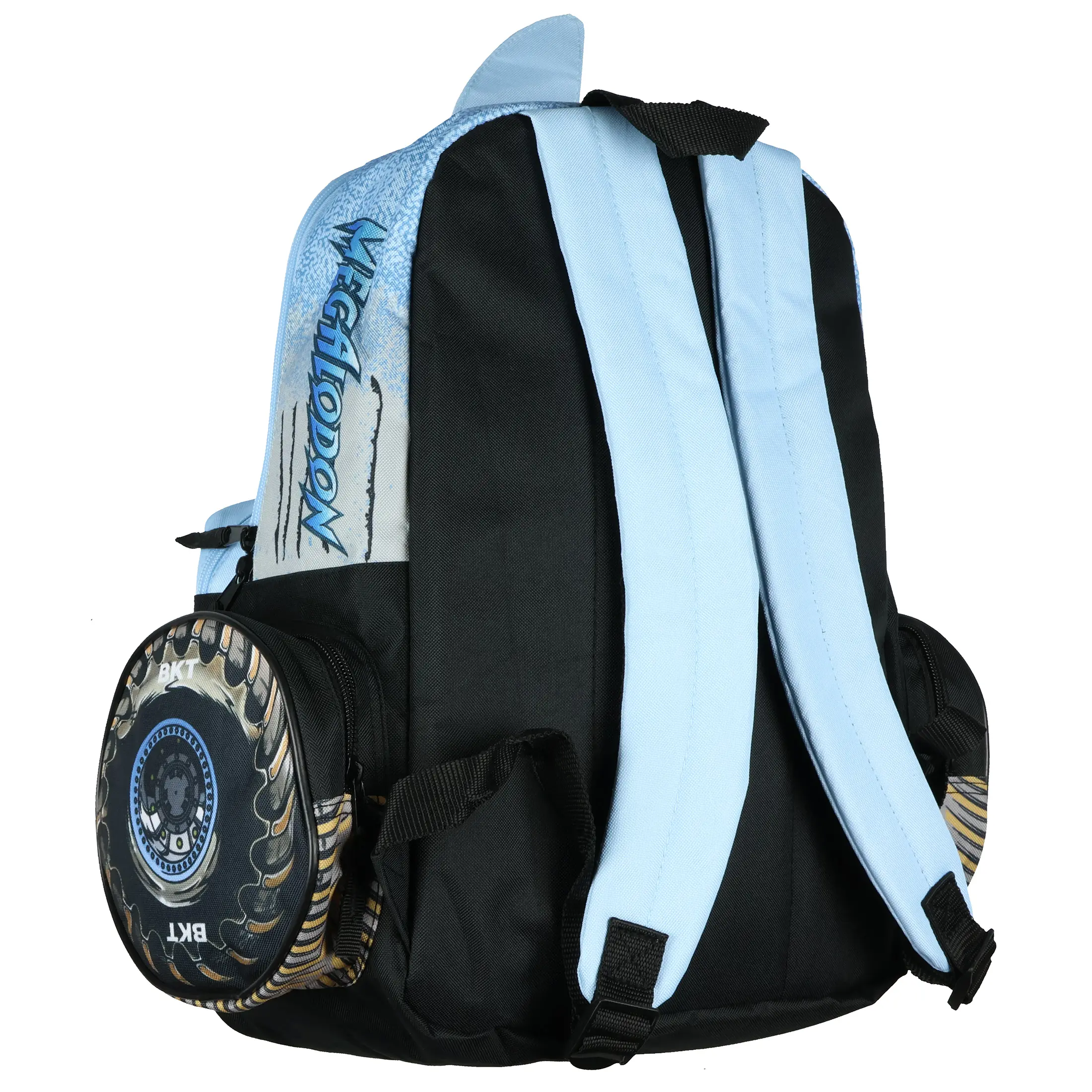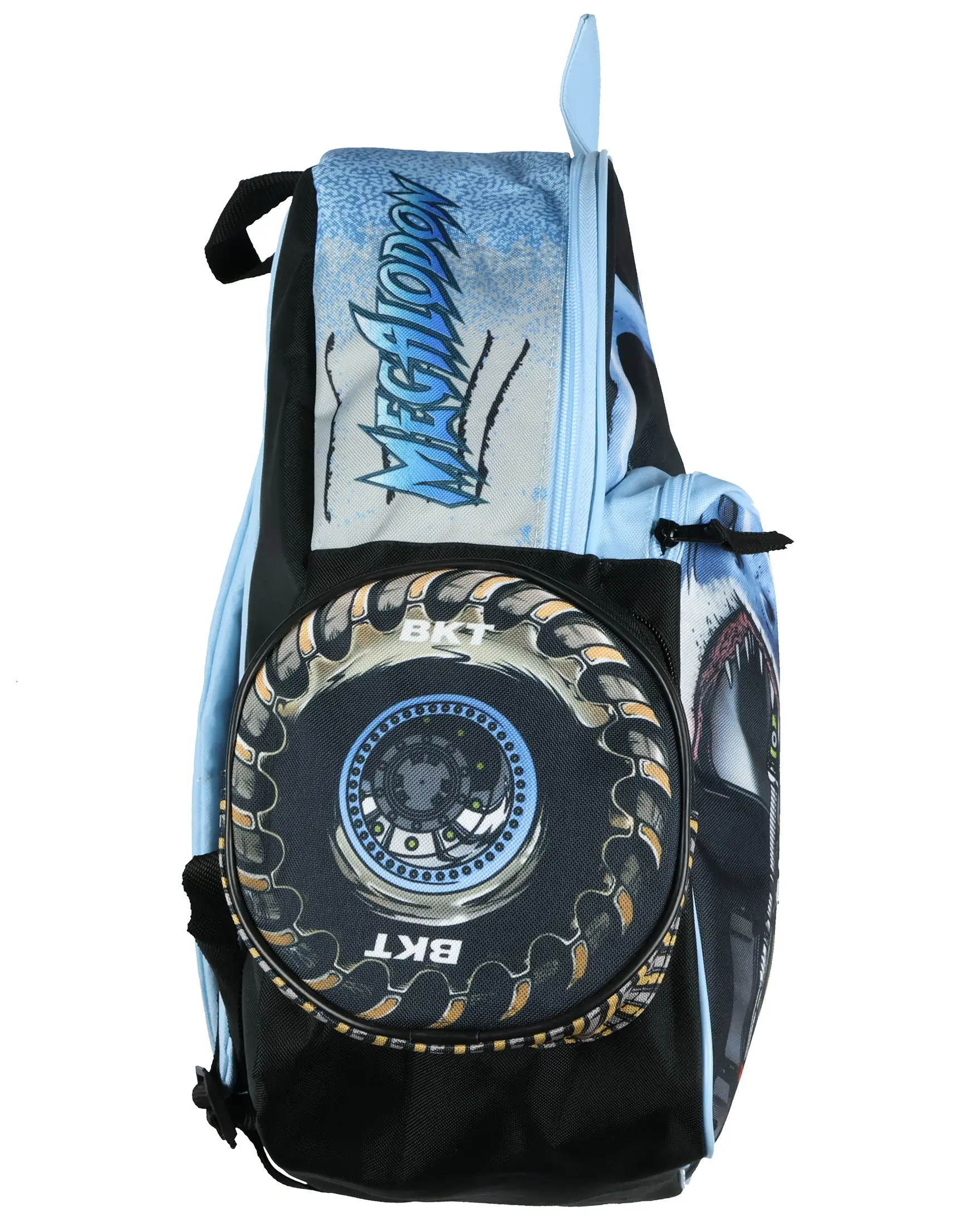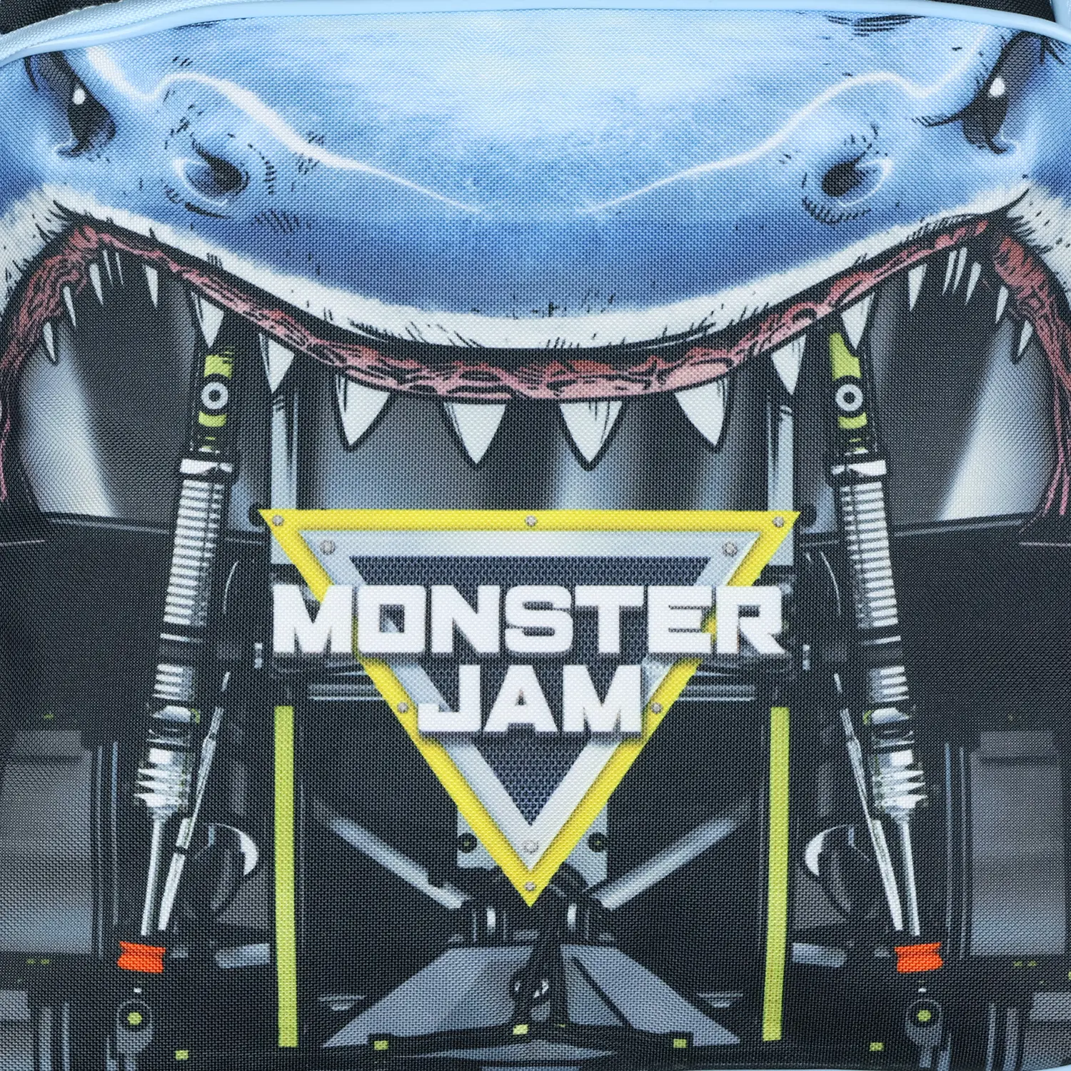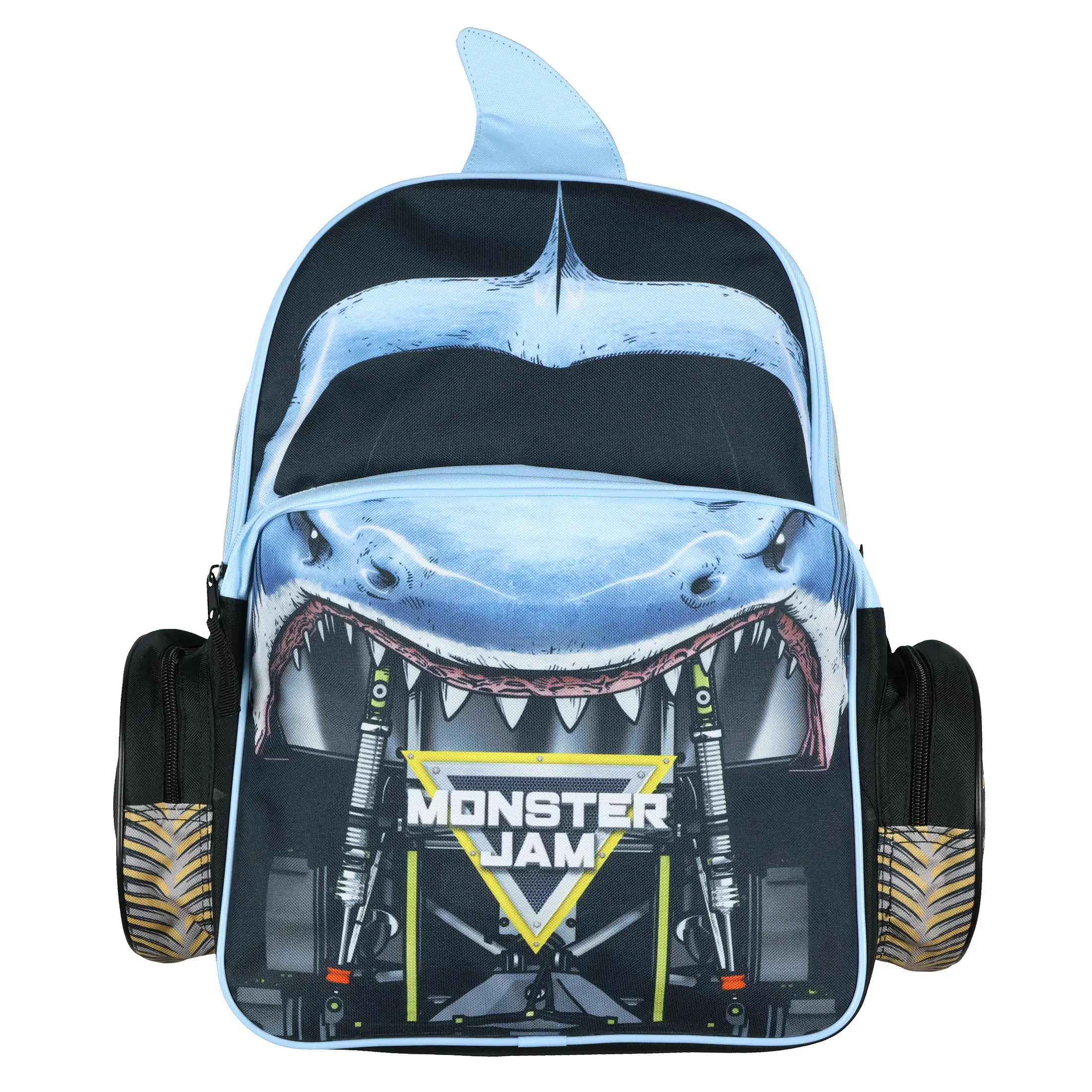 Get ready to take on the day with the power of the Megalodon! This Monster Jam backpack features a striking allover design inspired by the mighty shark truck, complete with a bold truck grill print. The spacious main compartment, equipped with a padded back and laptop sleeve, offers the ideal blend of storage and protection for school supplies, tech, and more. The front zippered pocket and two BKT tire-printed side compartments give you easy access to smaller essentials while adding extra Monster Jam flair. Built for fans who want to carry the excitement of Monster Jam wherever they go, this backpack is designed for both style and functionality. The padded, adjustable shoulder straps ensure comfort during daily use, while the durable materials are made to handle the demands of busy days. This backpack measures 16" x 12" x 4" Officially Licensed Product Spacious Main Compartment: The large zippered compartment provides plenty of space for books, binders, and daily essentials. Designed with a padded back and a built-in laptop sleeve, this backpack helps keep your tech and gear protected while on the go Tire-Inspired Side Pockets: Two zippered side pockets feature a rugged BKT tire print, adding to the Monster Jam theme while offering convenient storage for smaller accessories Comfortable and Adjustable Fit: Designed for all-day wear, the padded adjustable straps help distribute weight evenly for a comfortable carry. Whether heading to school or gearing up for an adventure, this backpack is built for both style and support. This backpack measures 16" x 12" x 4" Built for Everyday Action: This Monster Jam Megalodon backpack is ready for anything from school days to weekend outings. The durable design, easy-access compartments, and shark-inspired look make it a must-have for fans who want to take their favorite monster truck everywhere