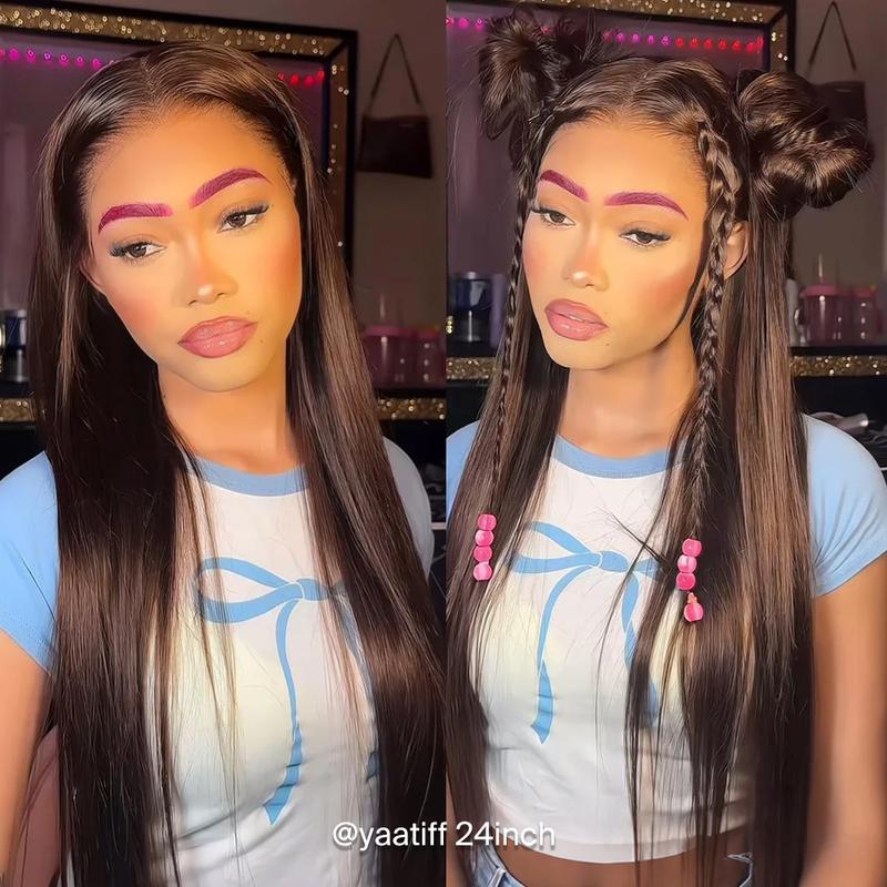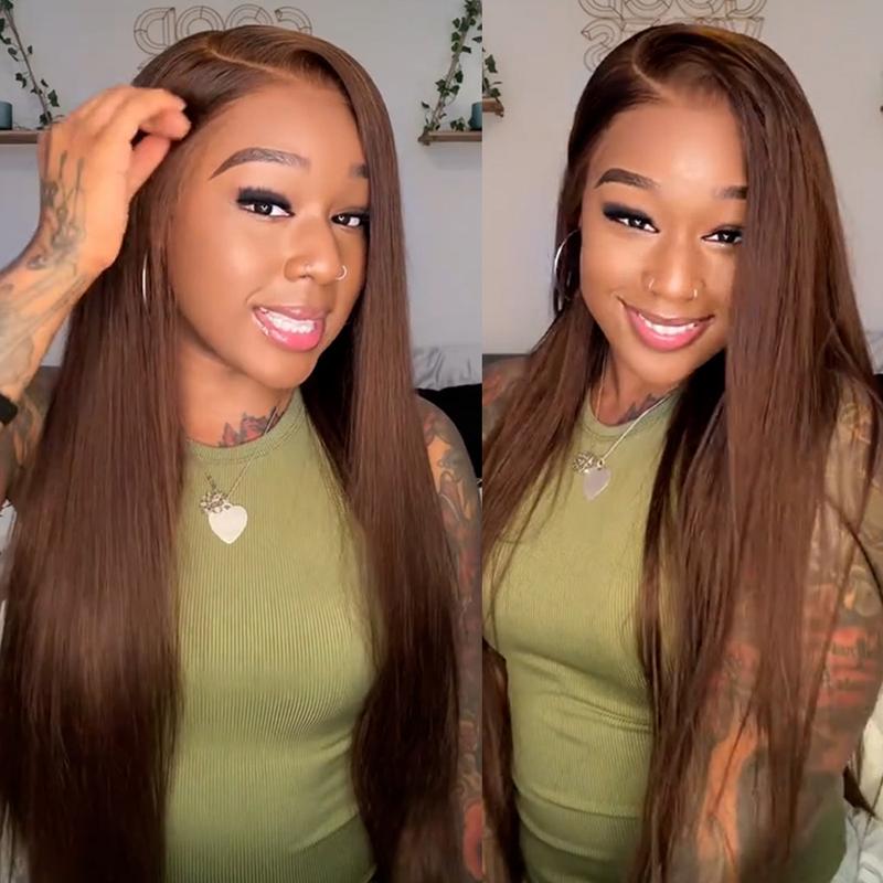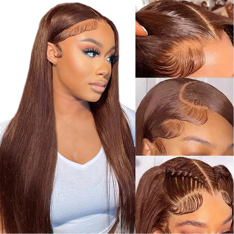 [#4 Chocolate Brown] Megalook 13x6 Glueless HD Lace Frontal Wigs Silky Straight HD Lace Glueless Wig Pre Bleached Tiny Knots Put On Go Beginner Friendly