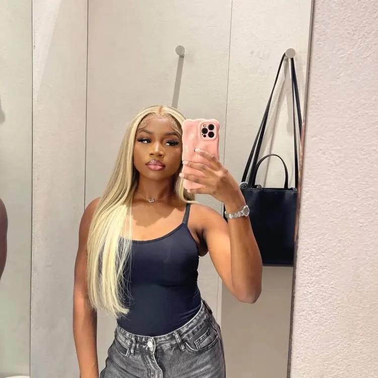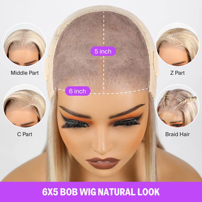 [5x6 Lace] Megalook P10/613 Champagne Blonde Glueless Wigs Silky Straight 100% Human Hair Lace Front Wig 5x6 Lace Closure Hair Wig