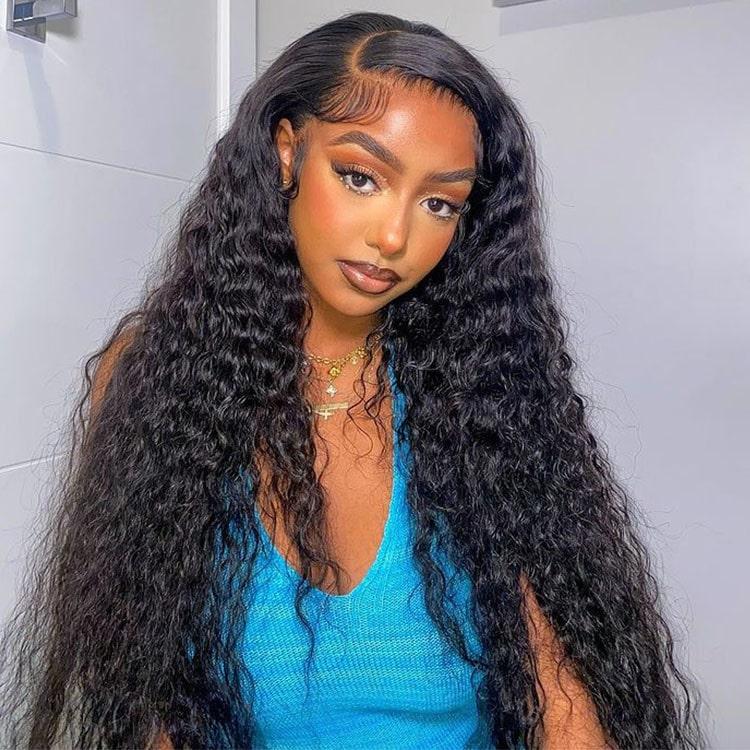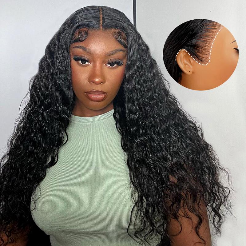 [13x6 GLUELESS WIG] Megalook Glueless Water Wave Transparent Lace Frontal Wigs Skin Melted Pre-everything Put on Go Drawstring Wig Suit For Any Head Size