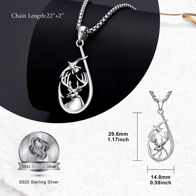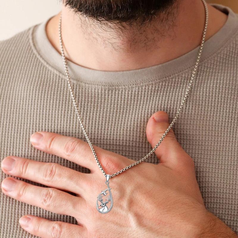 Crafted from 925 Sterling Silver, this necklace features a Fish Hook Pendant, symbolizing adventure and prowess. Ideal for men, it makes a perfect gift for fathers, husbands, and sons. Embrace the spirit of the wild with this deer bass fish and wild duck hunting jewelry.