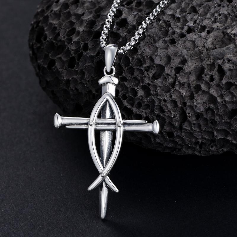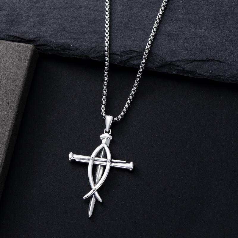 Dive deep with anchored hope. Ichthys spikes, tarnish-proof. Navigate the year with fearless grace. 🎣@MEIDERBO Jewelry #silverjewelry #crossnecklace #menstyle #nail #fisherman