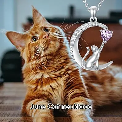 5. MEIDERBO Jewelry S925 Sterling Silver Cat Necklace Cat Birthstone Pendant Necklace Cute Animal Jewelry Gifts for Women
