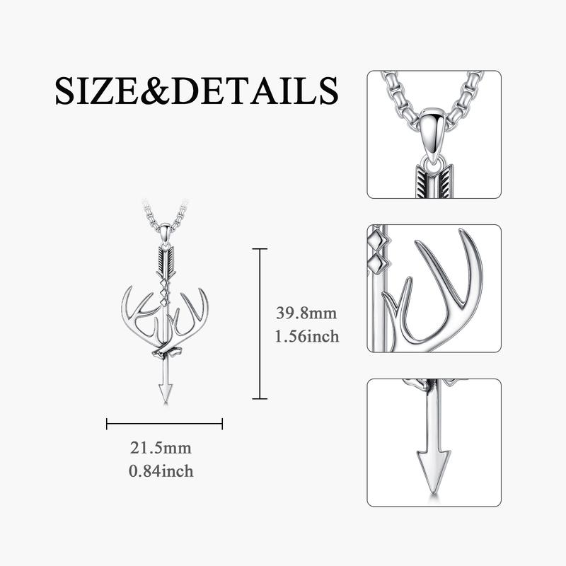 ·Material & Design: This necklace features a 925 Sterling Silver Cross Deer Antler Fish Hook Pendant. Perfect for hunting enthusiasts, it combines elegance with a rugged design. 🐌🎣