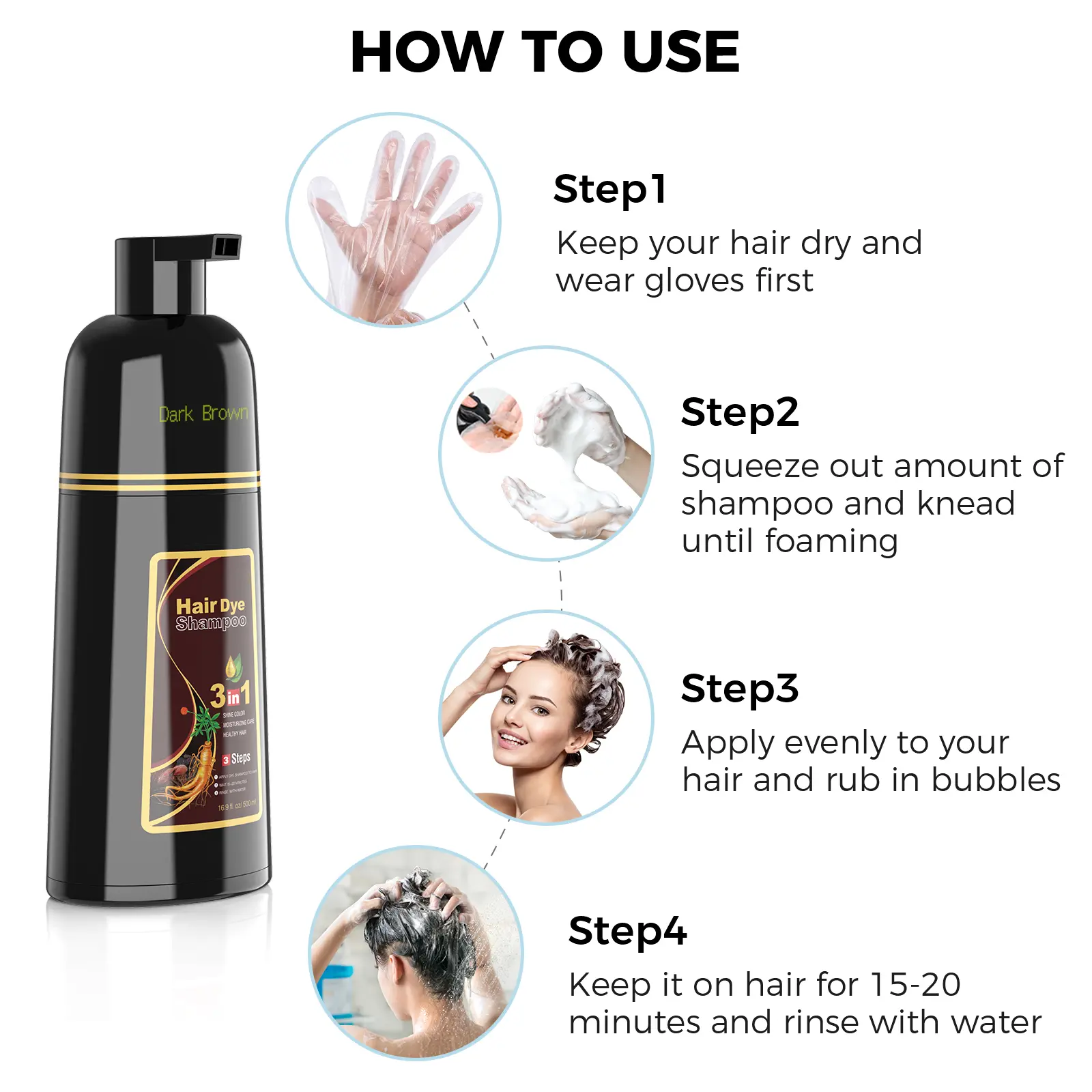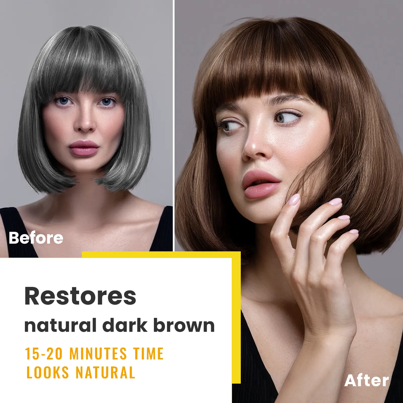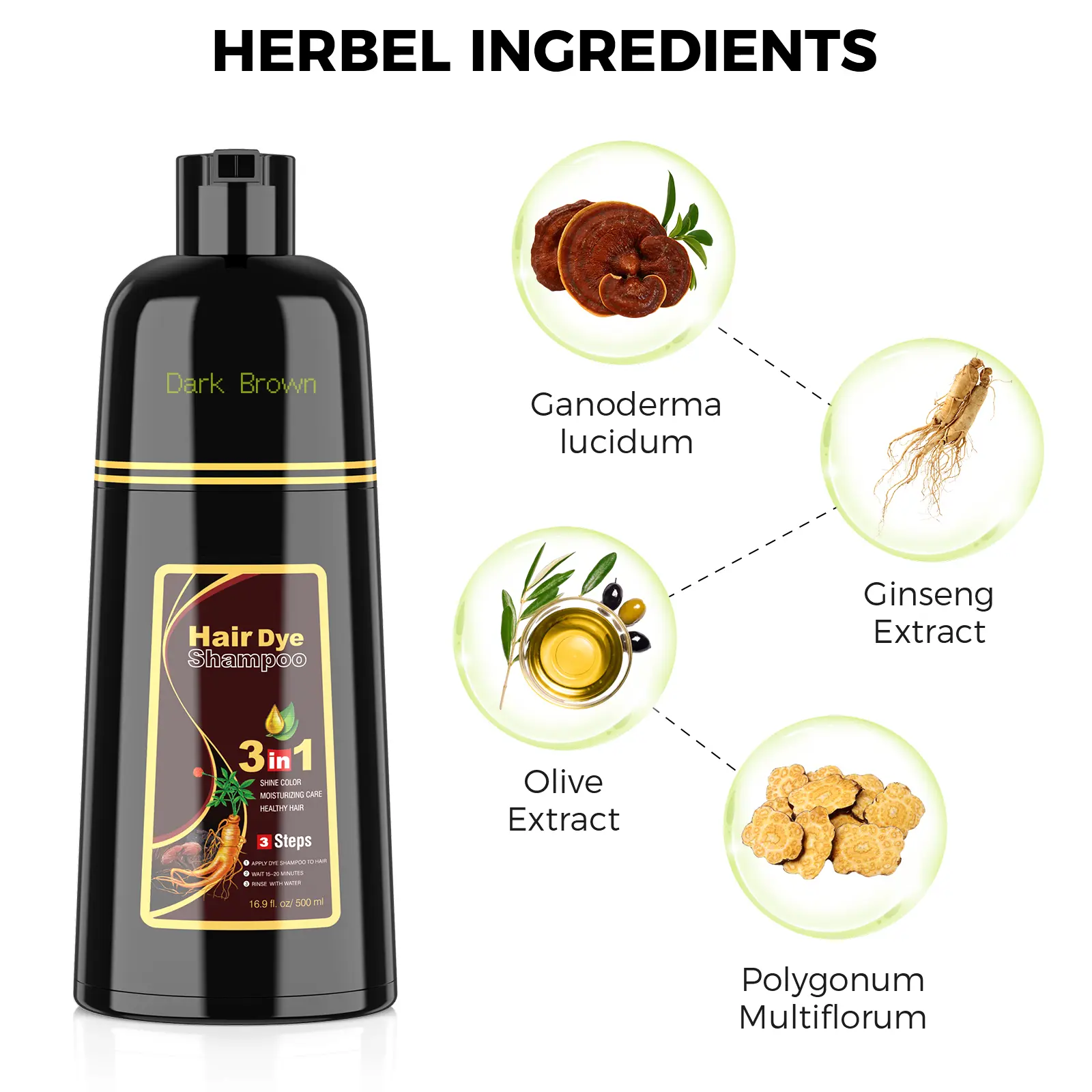 Polygonum multiflorum strengthens hair roots, making them robust and soft. Ginseng extract nourish hair, ensuring long-lasting color without damage. This natural formula balances beauty and health, restoring youthful hair with added shine. It complements gray hair, enhancing its health.