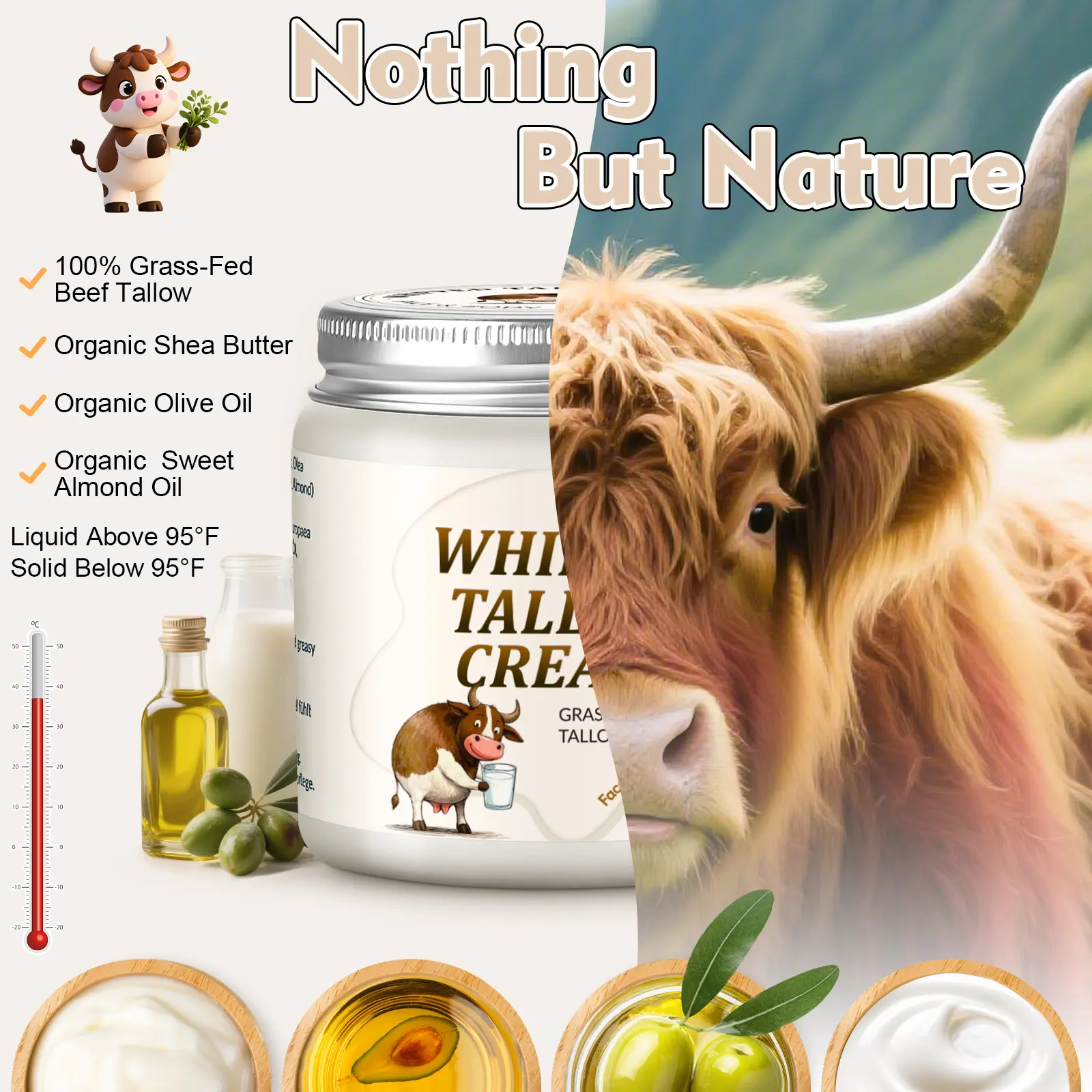 🌿 Grass-Fed Beef Tallow: Rich in fatty acids & vitamins, deeply nourishing and supporting a healthy skin barrier.