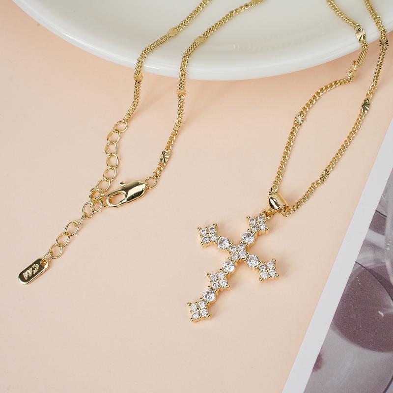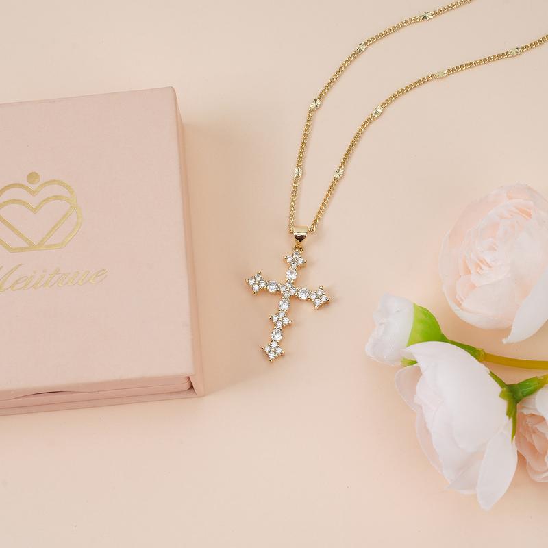 This is a beautiful necklace. I have worn it almost everyday. It’s my go to!! The rest of my jewelry is jealous!! The size of the cross is perfect. The chain is simple but so elegant. It has an extender so you can change the length accordingly. Perfect!!