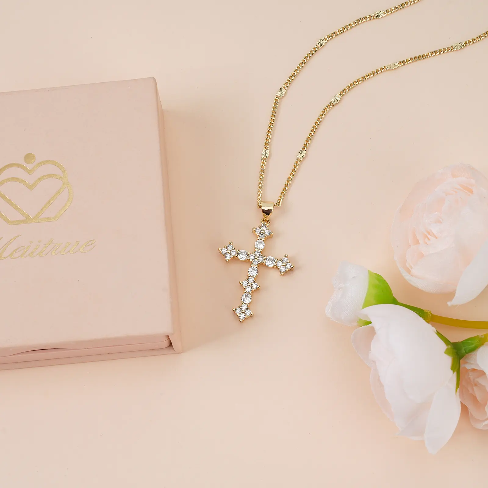 MEIITRUE 14K Gold Plated Cross Pendant Necklace for Women