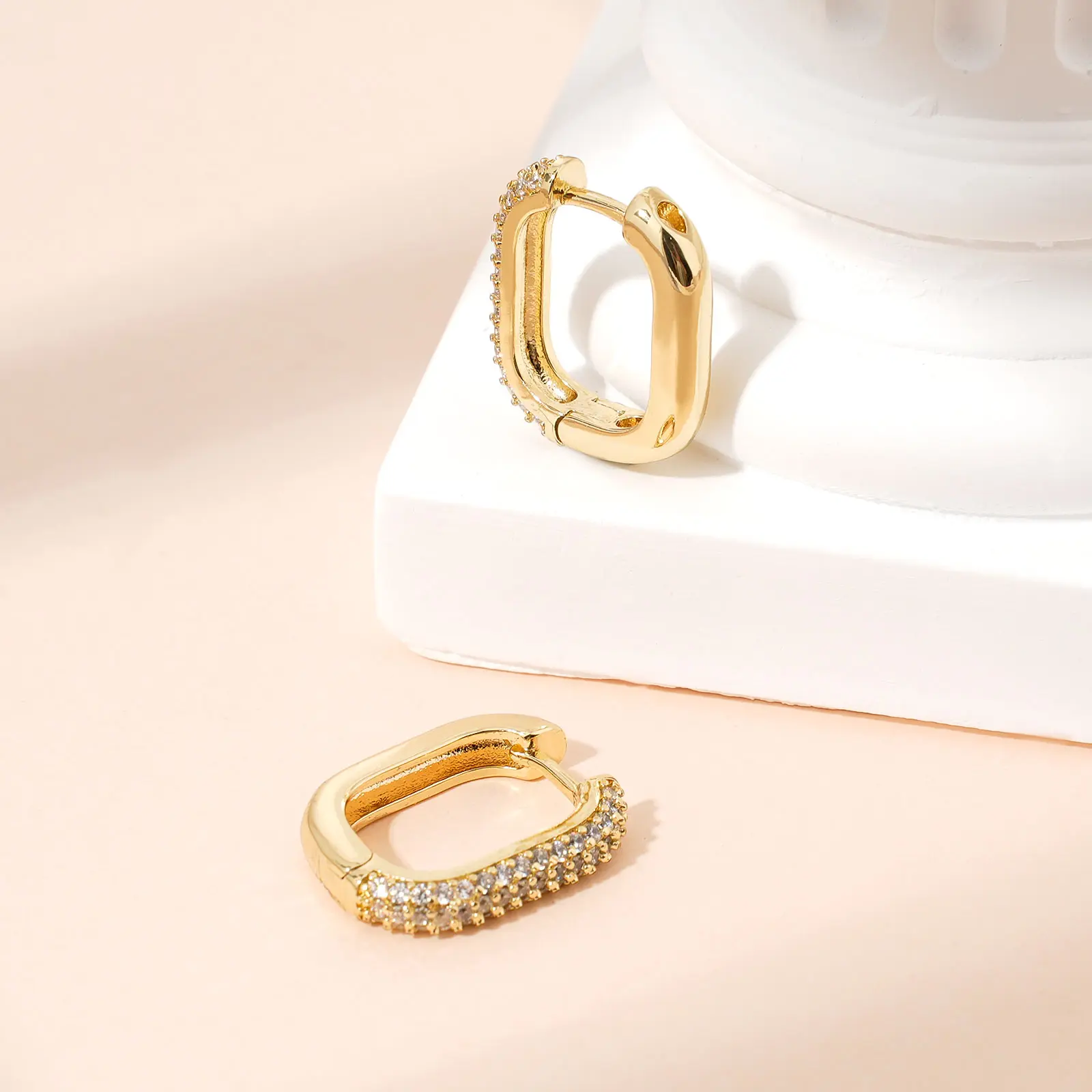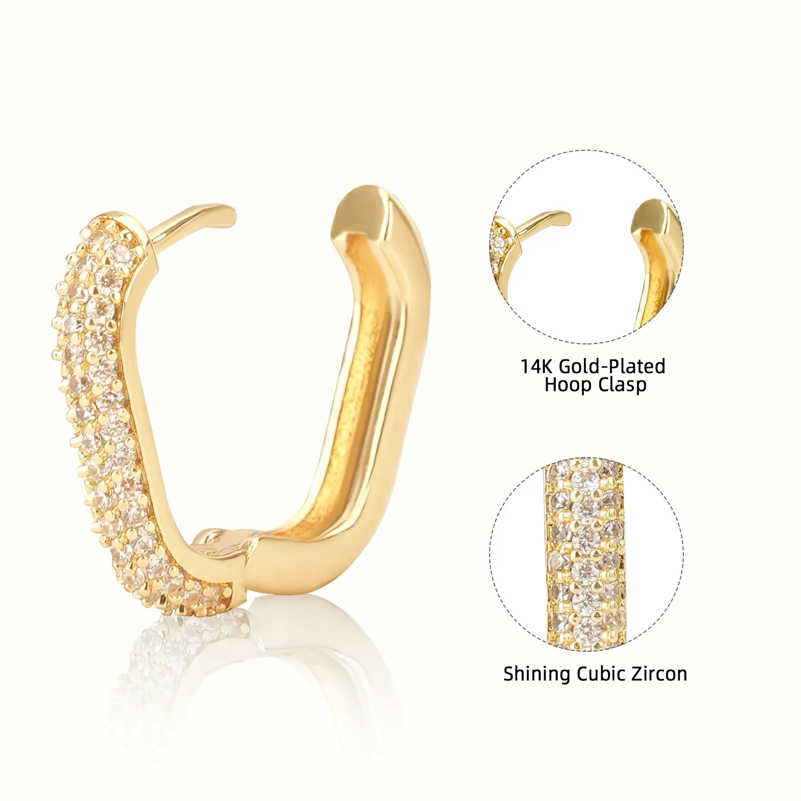 Elegant Design: Diameter 18mm(0.7inch), Wide 14mm(0.55inch), each earring weighs just 0.08 ounces, ensuring comfortable all-day wear. These U-shaped earrings are adorned with sparkling cubic zirconia, adding a touch of elegance and sophistication to any outfit.