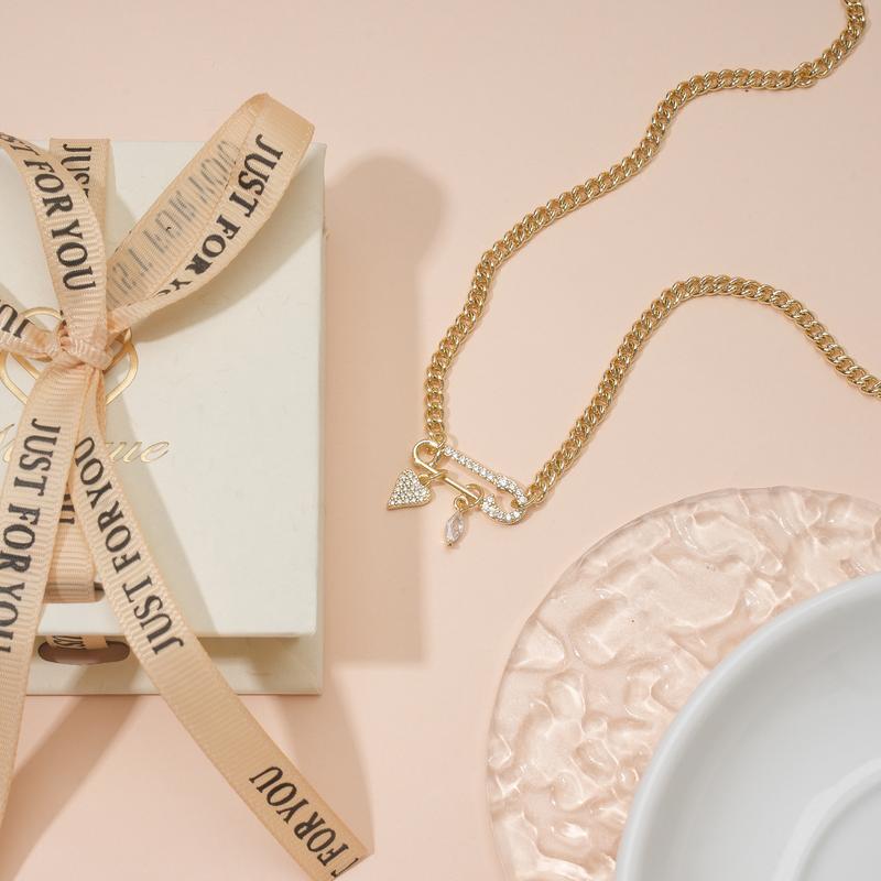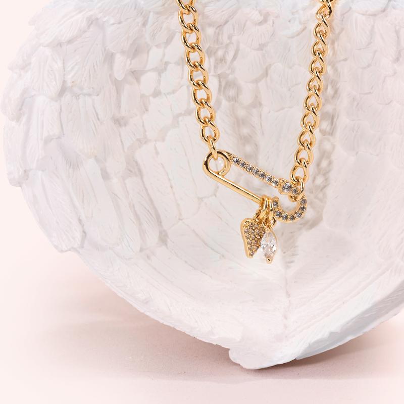 This safety pin is not only pretty and unique... it's the perfect meaningful gift!💝 #14kgoldplated #safetypinnecklace #meaningfulgifts #giftsforher #heartnecklace