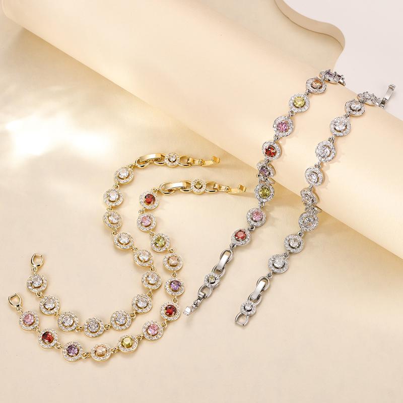 🌈✨ 5-Color CZ Circle Link Bracelet – 14K Silver/Gold-Plated Luxury Sparkle✨🌈