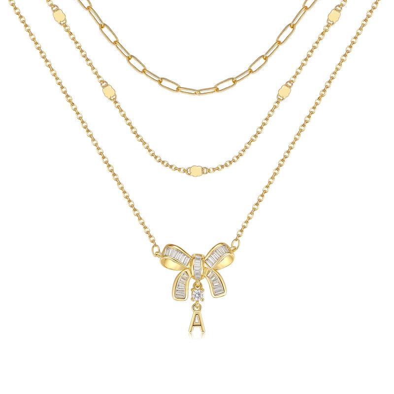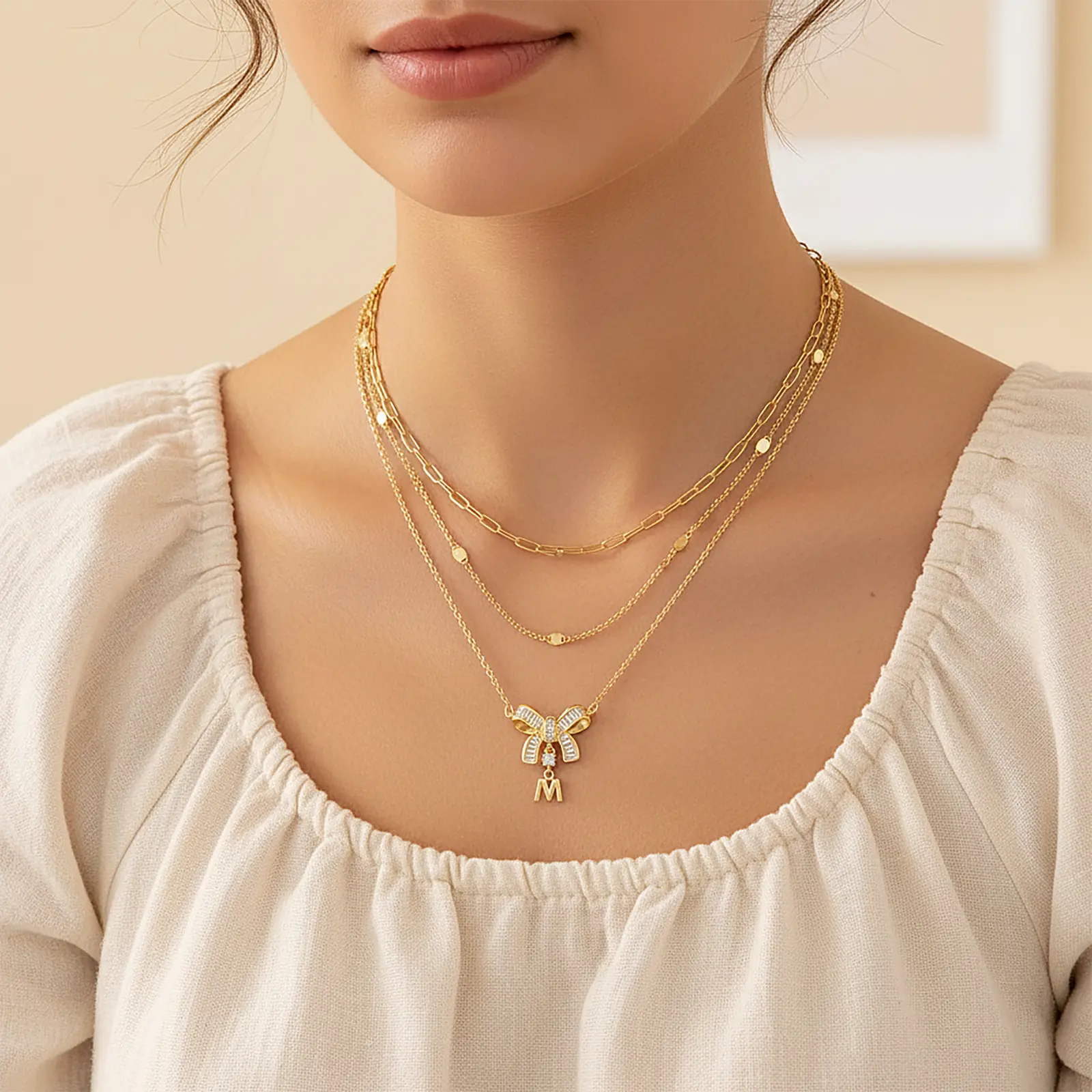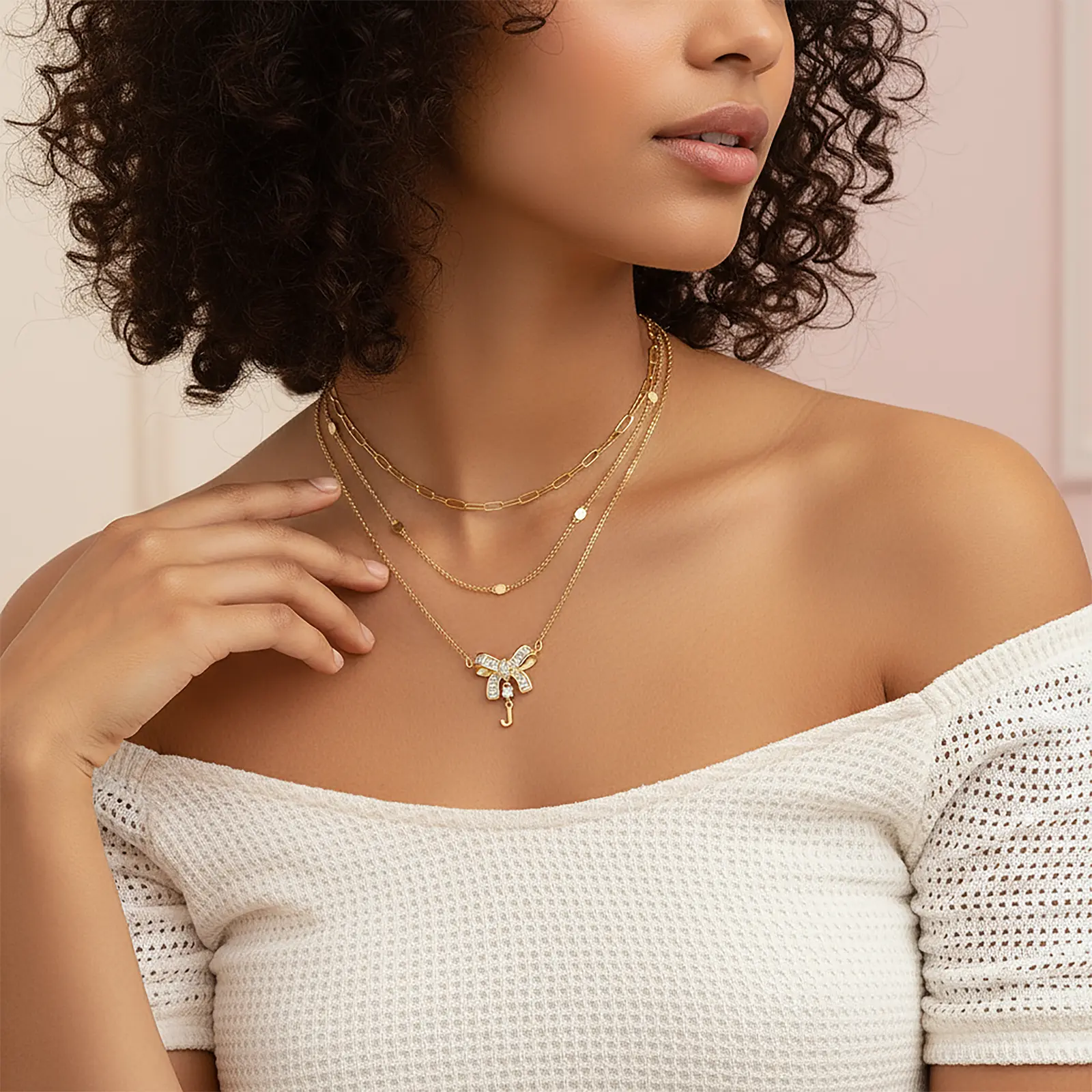 Upgrade your everyday style with this Elegant Initial Bow Layered Necklace Set — a chic, feminine, and personalized accessory designed to complement any outfit.