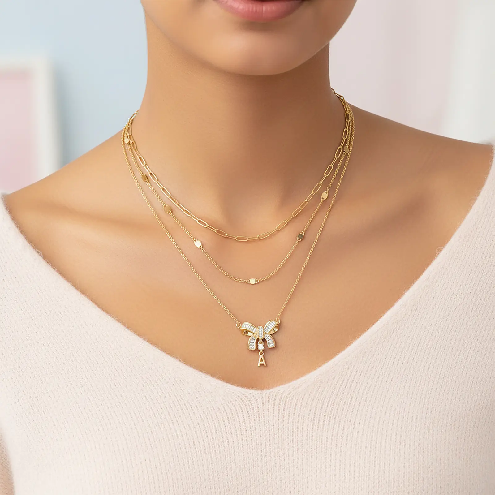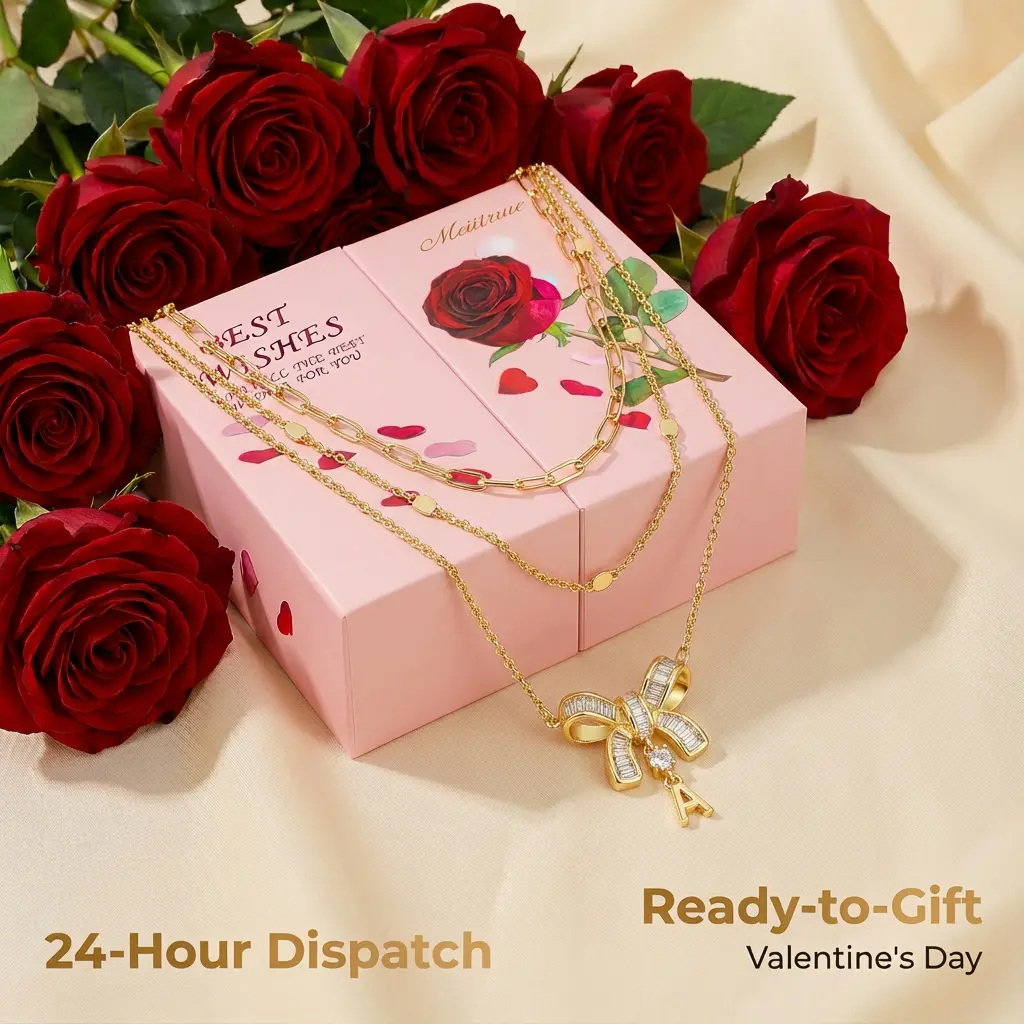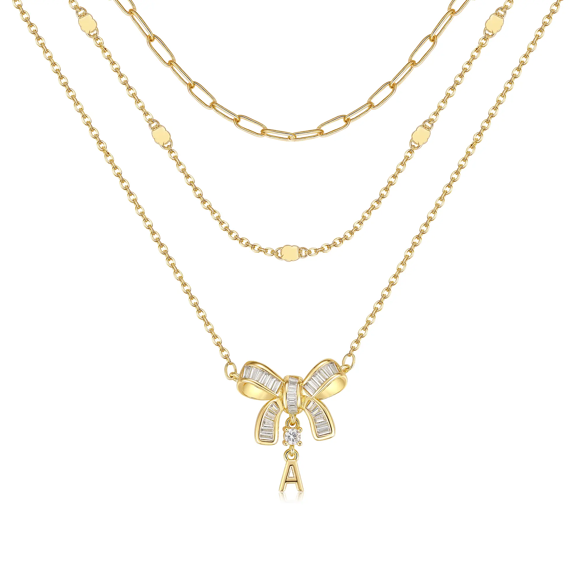 Upgrade your everyday style with this Elegant Initial Bow Layered Necklace Set — a chic, feminine, and personalized accessory designed to complement any outfit.