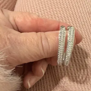 The Melba pave cz hoops are so pretty. They're good quality too they don't look cheapy. I would recommend these if you're looking for a medium size hoop. Good for a night out or everyday wear. And the best part about these earrings are they are non-tarnish, waterproof & lifetime guarantee. Sterling Forever is now my favorite jewelry company.