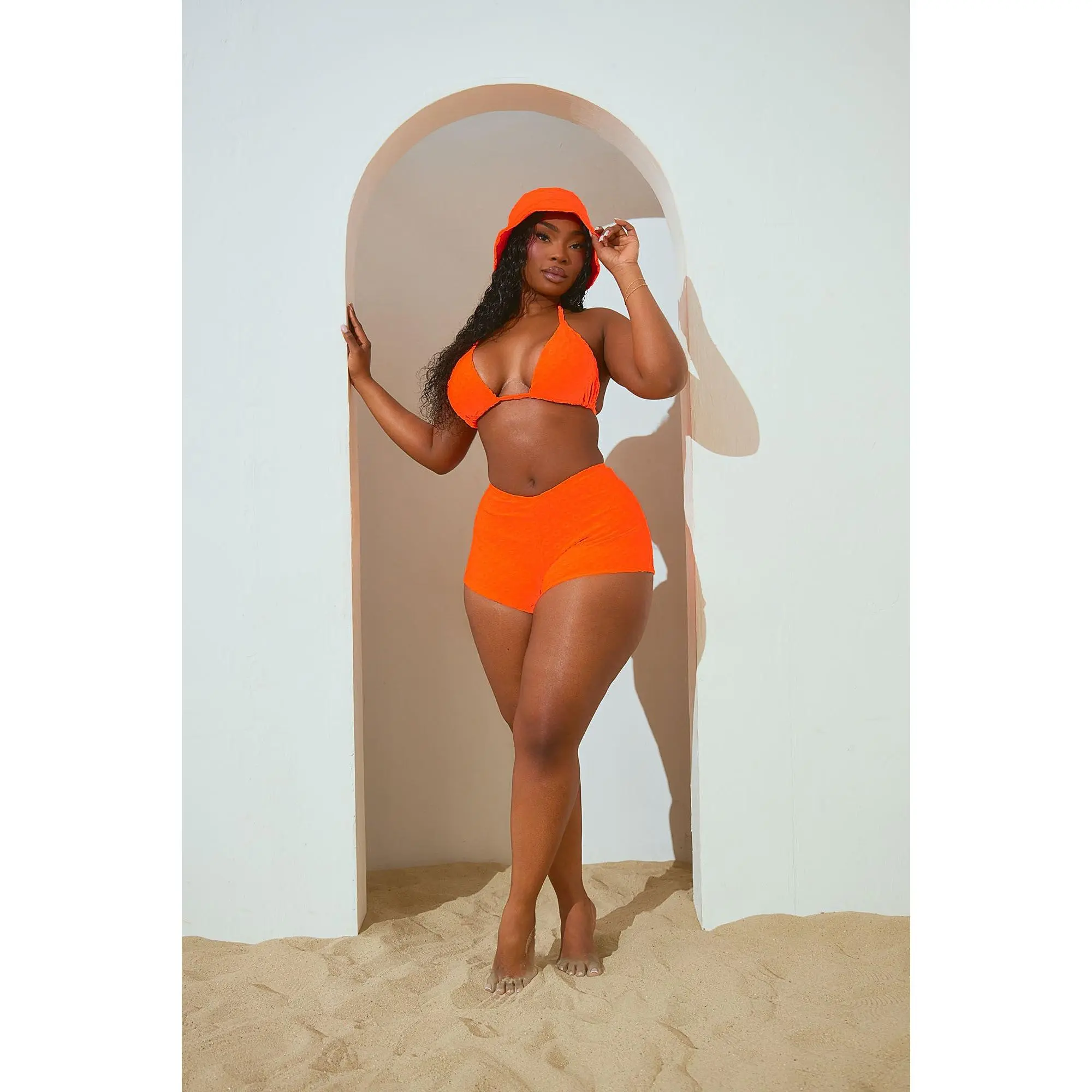 Melina 3 Piece Boyshort Bikini Set - Neon Orange