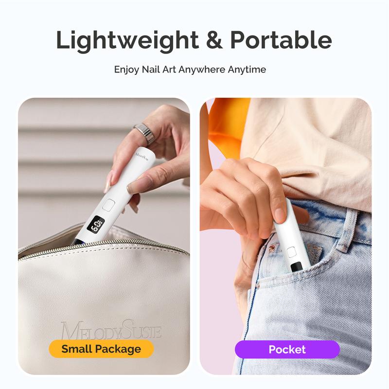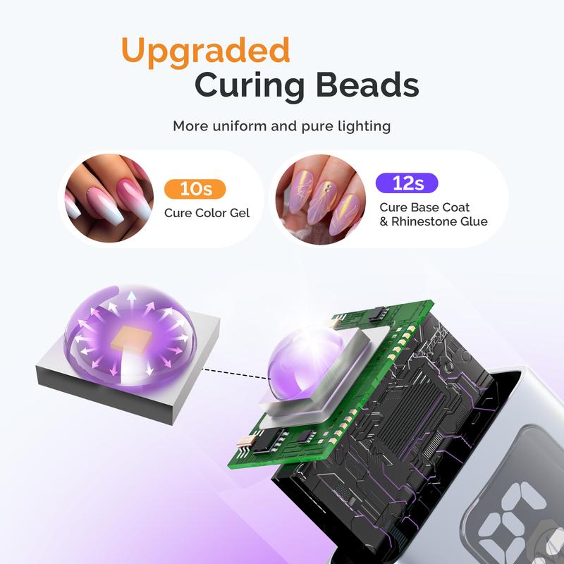 ·Compact Yet Powerful: Powered by advanced UV chip technology, this mini nail lamp delivers highly focused light output, allowing gel polish to cure in as fast as 10 seconds and rhinestone glue in about 12 seconds, saving you valuable time during manicures.