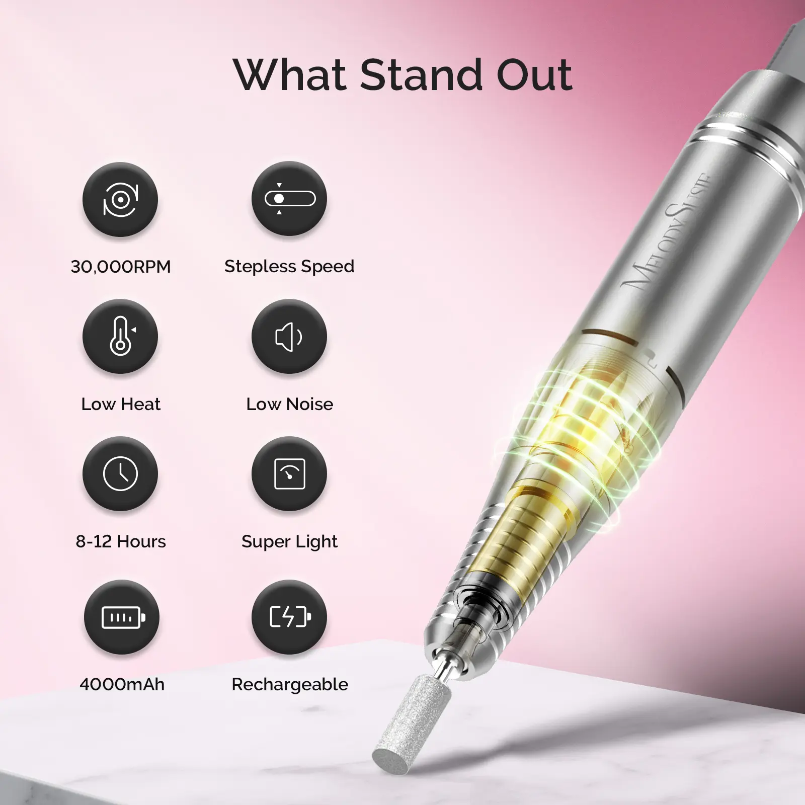 ·Professional Tools Meet Creative Design: Featuring the SC300F 30,000 RPM Nail Drill, P-Plus30G Cordless UV/LED Nail Lamp, Drill Bit Sets, Sanding Bands, and precision tools including the Cuticle Nipper Pusher Set, 6Pcs Nail Art Brush Set, Double-Sided File (100/180), Silver Chrome Powder, and 12-Grid Crystal Rhinestones — each piece designed to empower your creativity and achieve salon-quality results.