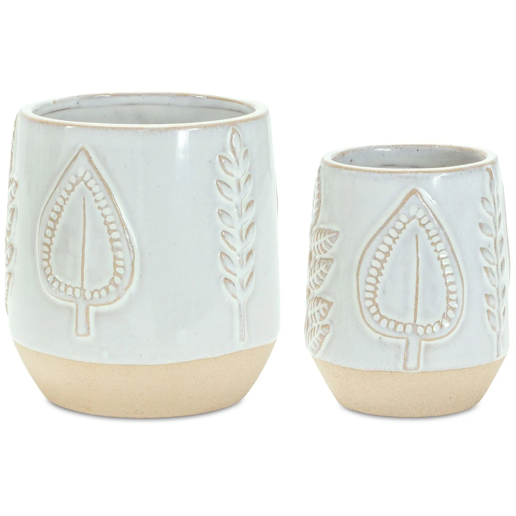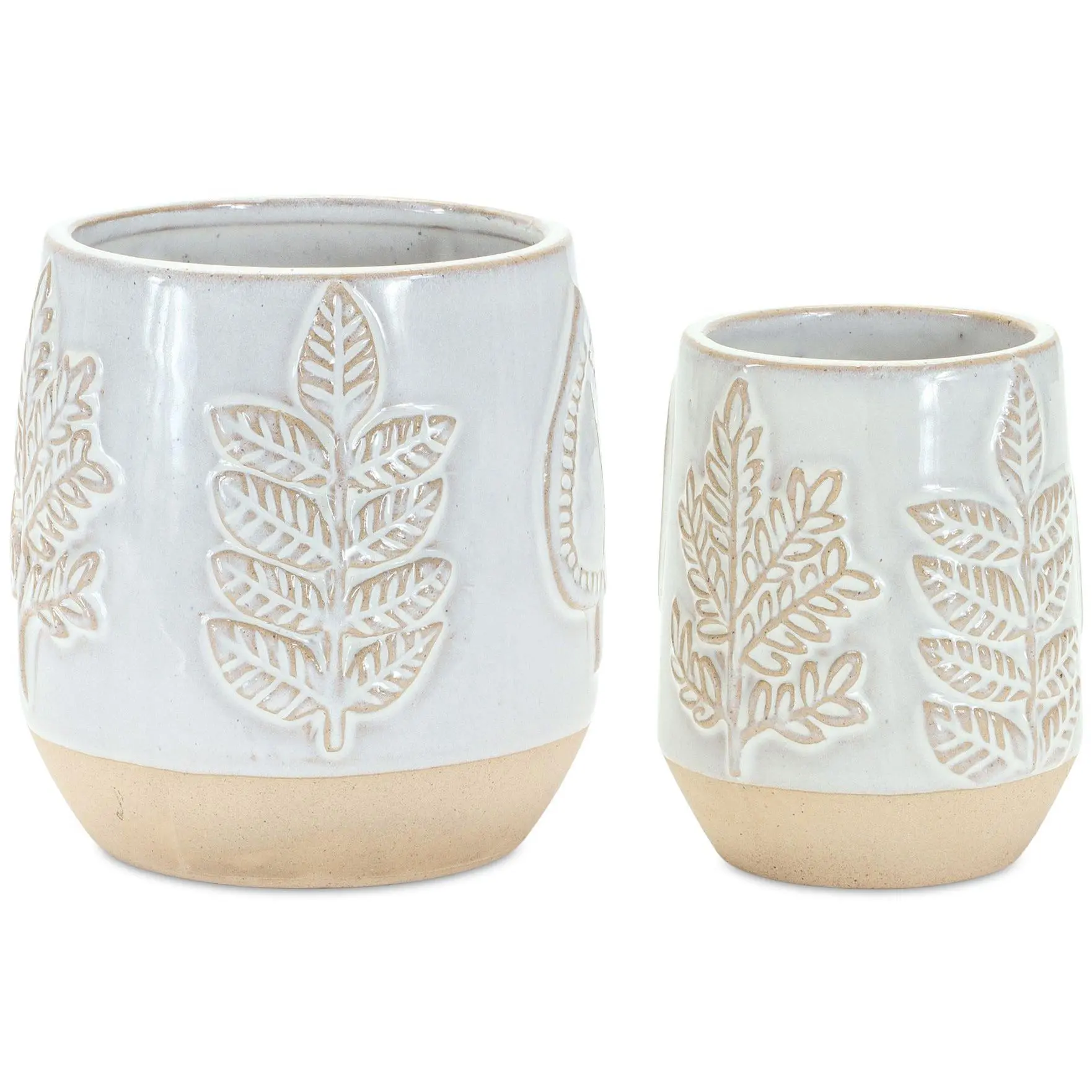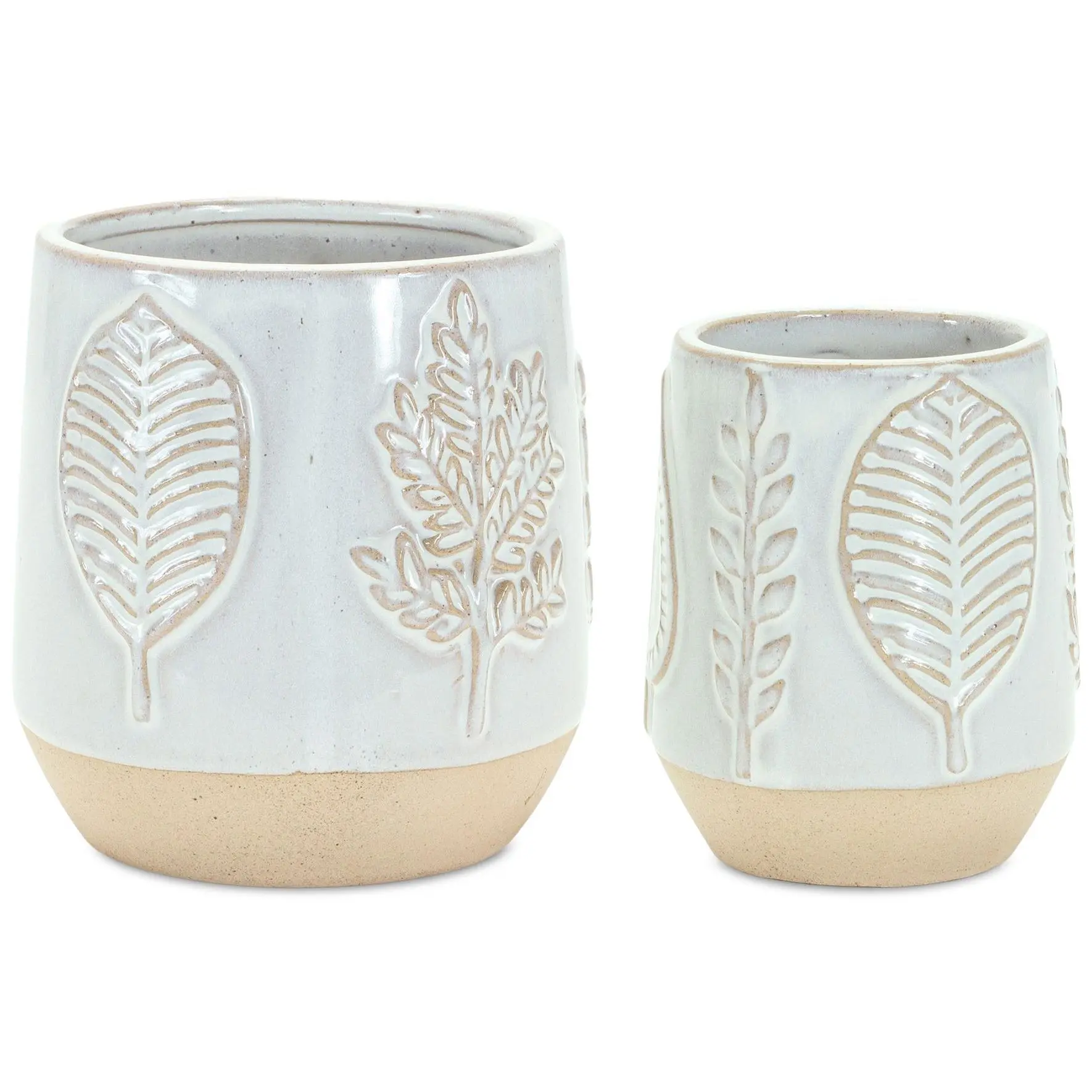 Melrose Porcelain Leaf Print Planter (Set of 2)