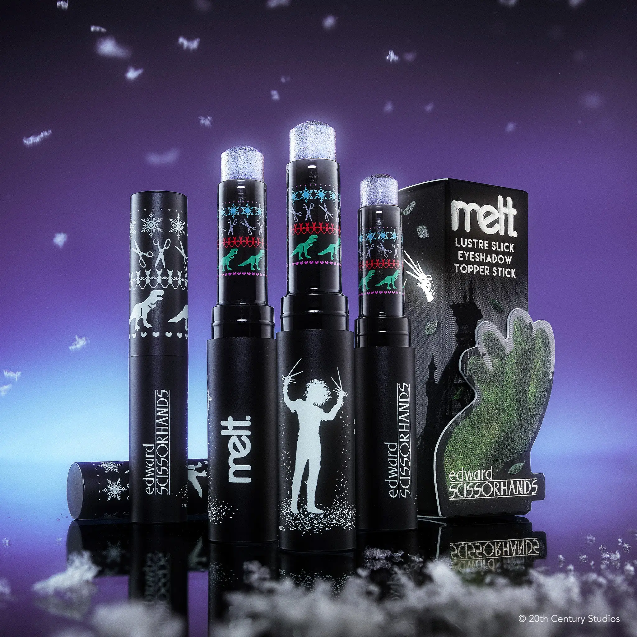 ·These creamy Eyeshadow Topper Sticks are your shortcut to smudge-proof shimmer with just one swipe. Whether you’re sculpting a full icy eye or adding a quick stroke of gothic silver, these sticks deliver a rich sparkle with a cooling glide and long-wear finish—no brush required. Dressed in limited-edition wrapping that mimics the paper cutout Edward makes for show and tell, these shades are as collectible as they are wearable. Shade Details: It’s Cold Outside – A sparkling icy white with blue and pink color shifting sparkle that catches the light like freshly fallen snow. Scissorhands – A metallic steel gray that cuts through with sharp, silver shimmer. Why You’ll Love it - Long Wearing - Swipe-and-go convenience - Perfect for lids, or highlight - Talc-free, vegan, paraben-free, formula - Limited edition packaging and shades