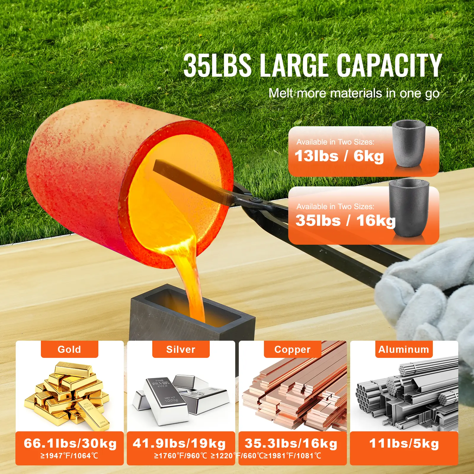 • Large Capacity for Extensive Melting: With a spacious 35LBS capacity, you can melt more material in a single batch. Whether for large-scale production or personal projects, this metal melting furnace kit meets your needs, allowing your creativity to flourish.