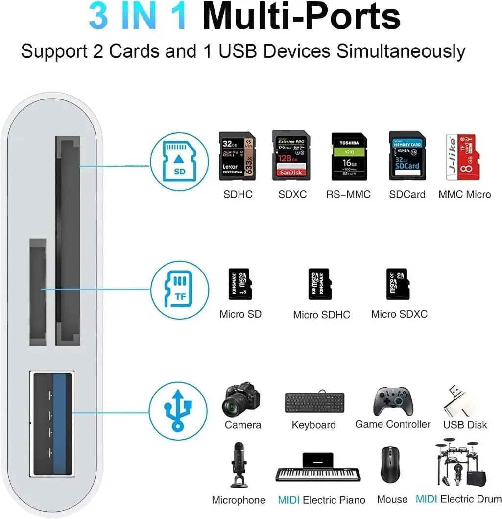 USB SD TF Card Reader for iPhone, iPad, and USB-C Devices