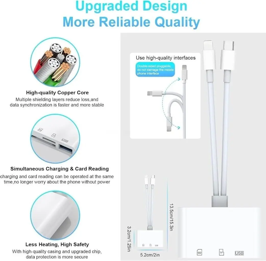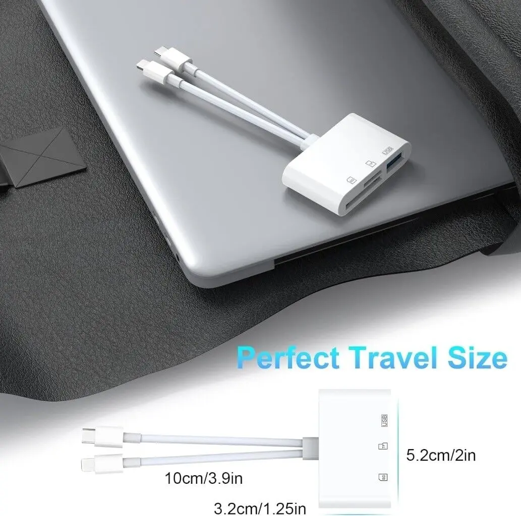This high-speed card reader allows you to easily transfer photos, videos, and files from SD and TF cards to your iPhone, iPad, or USB-C devices. Perfect for photographers, travelers, and anyone who needs quick and reliable data access on the go.