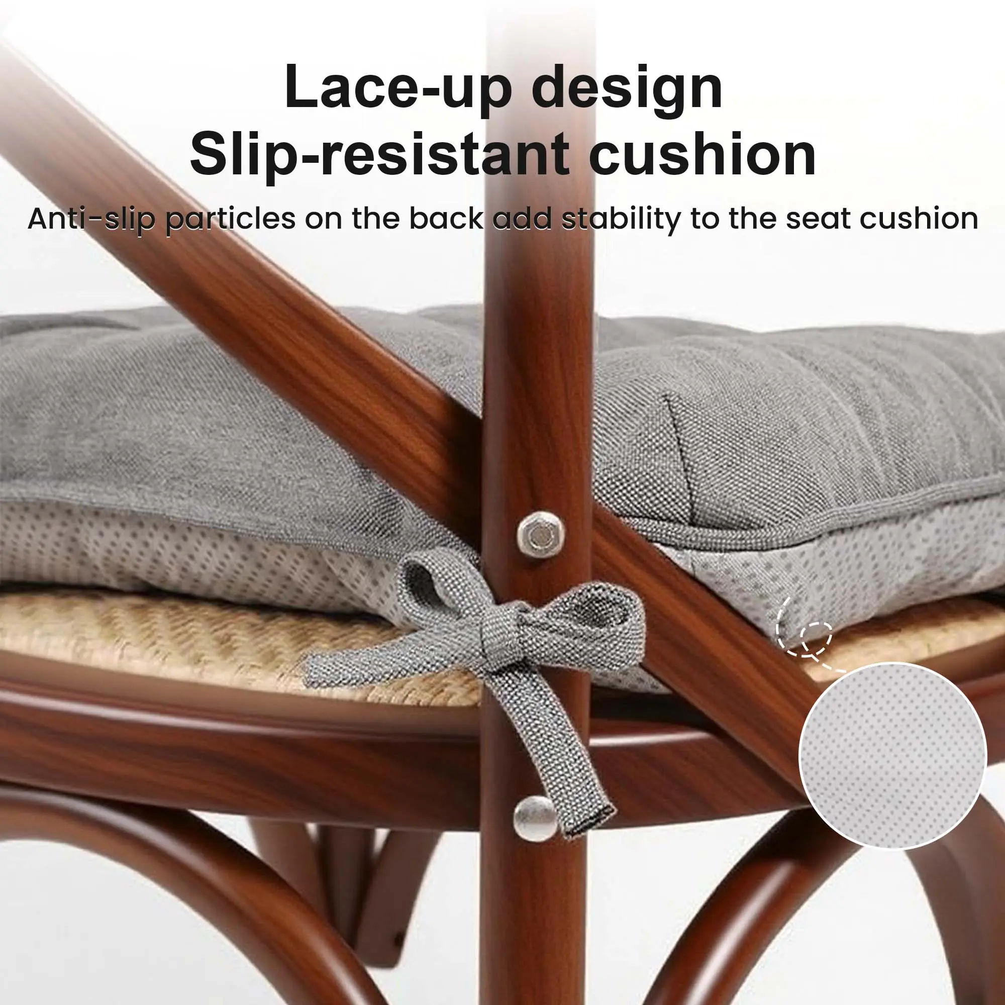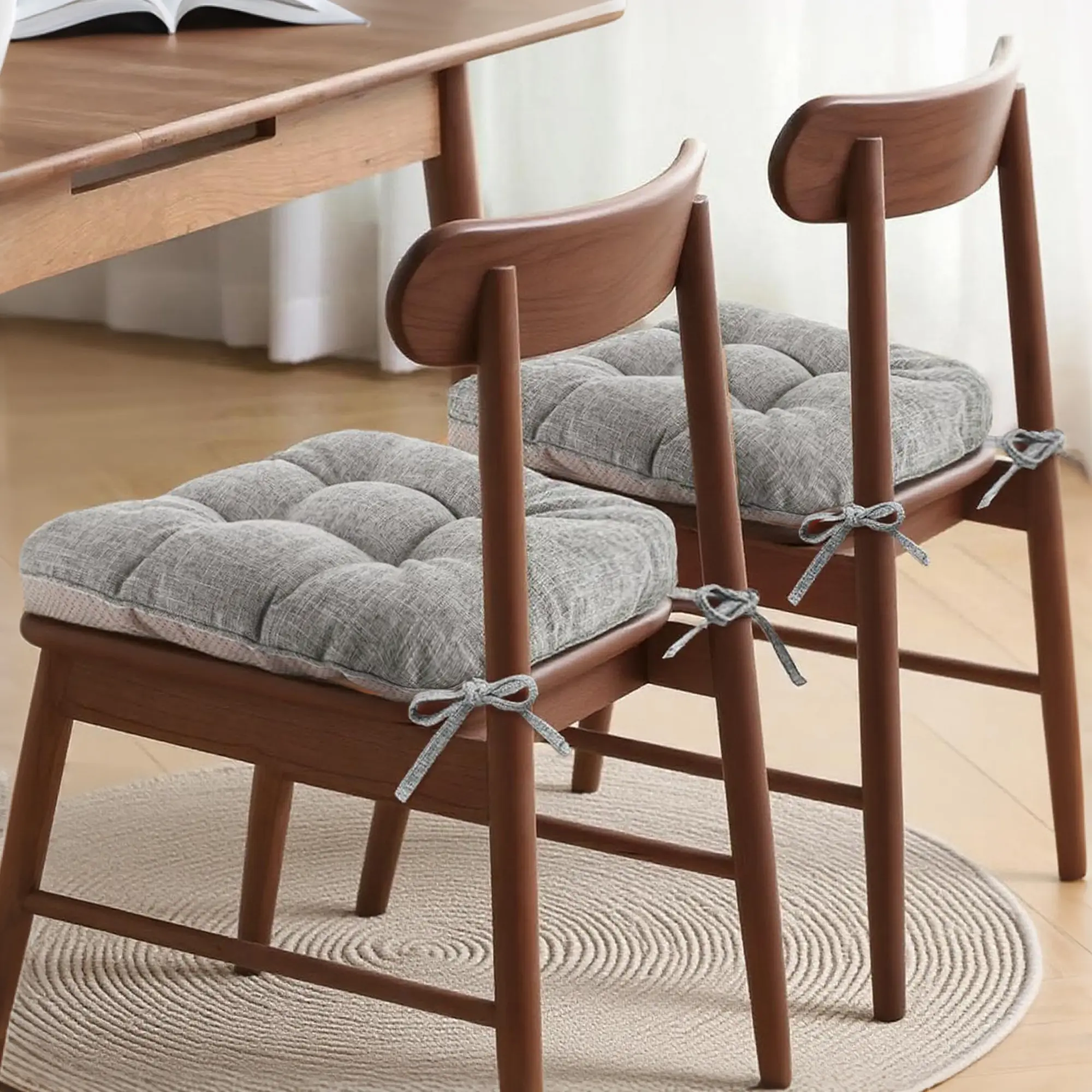 Non-Slip Bottom with Secure Ties: Each cushion features a non-slip bottom that prevents sliding on hard floors or carpets. The attached ties ensure the cushion stays securely in place, even when getting in and out of the chair. These memory foam seat pads are stable, safe, and perfect for dining chairs, office chairs, kitchen stools, or patio seating.