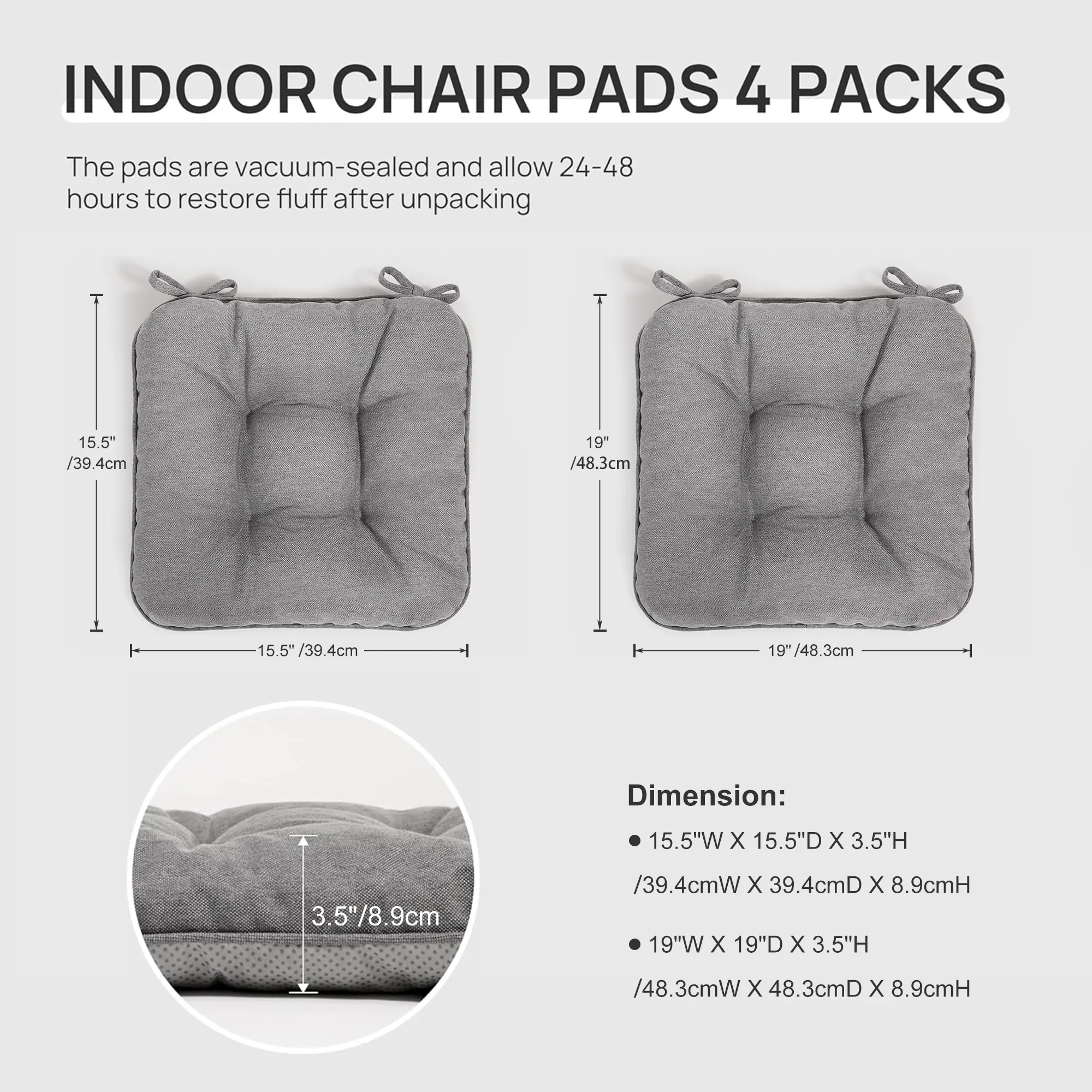 Fast Recovery from Packaging Compression: For shipping, the cushions are vacuum-compressed and may appear flat or wrinkled upon unpacking. This is normal. The high-quality memory foam will slowly regain its shape within a few hours. For faster recovery, place the cushion in a dryer on a low-temperature setting. Within minutes, your chair pads will return to their original fluffy, supportive form—ready to provide comfort for any chair.