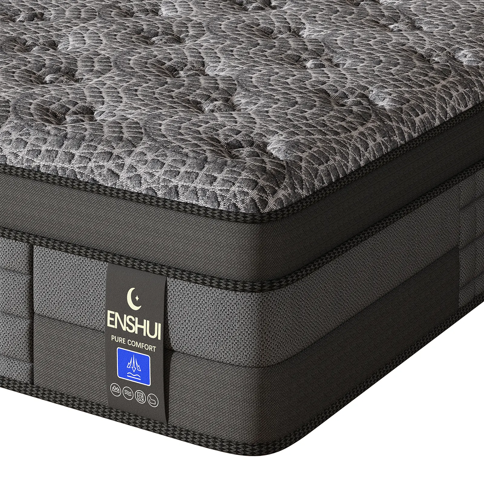 ·Hybrid Mattress combines breathable knitted fabric, cooling gel memory foam, high-density support layers, and individually wrapped pocket coils.