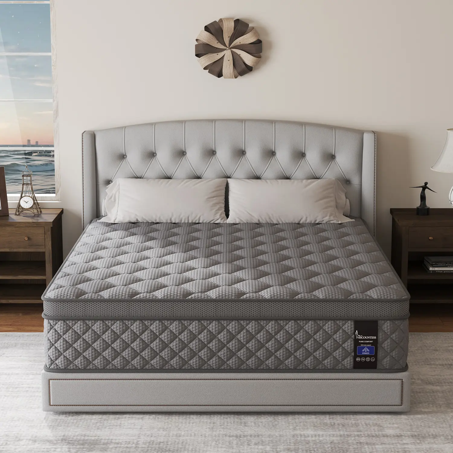 【Elevate Your Sleep Experience】: Upgrade your sleep sanctuary with our queen Viscountess hybrid mattress, certified by CertiPUR US and Oeko-Tex Standard 100 for unparalleled safety and durability. The combination of traditional spring support and luxurious foam layers in this mattress creates a firm sleeping surface that effectively aligns the spine and evenly distributes weight, reducing pain and discomfort for a restful night's sleep.