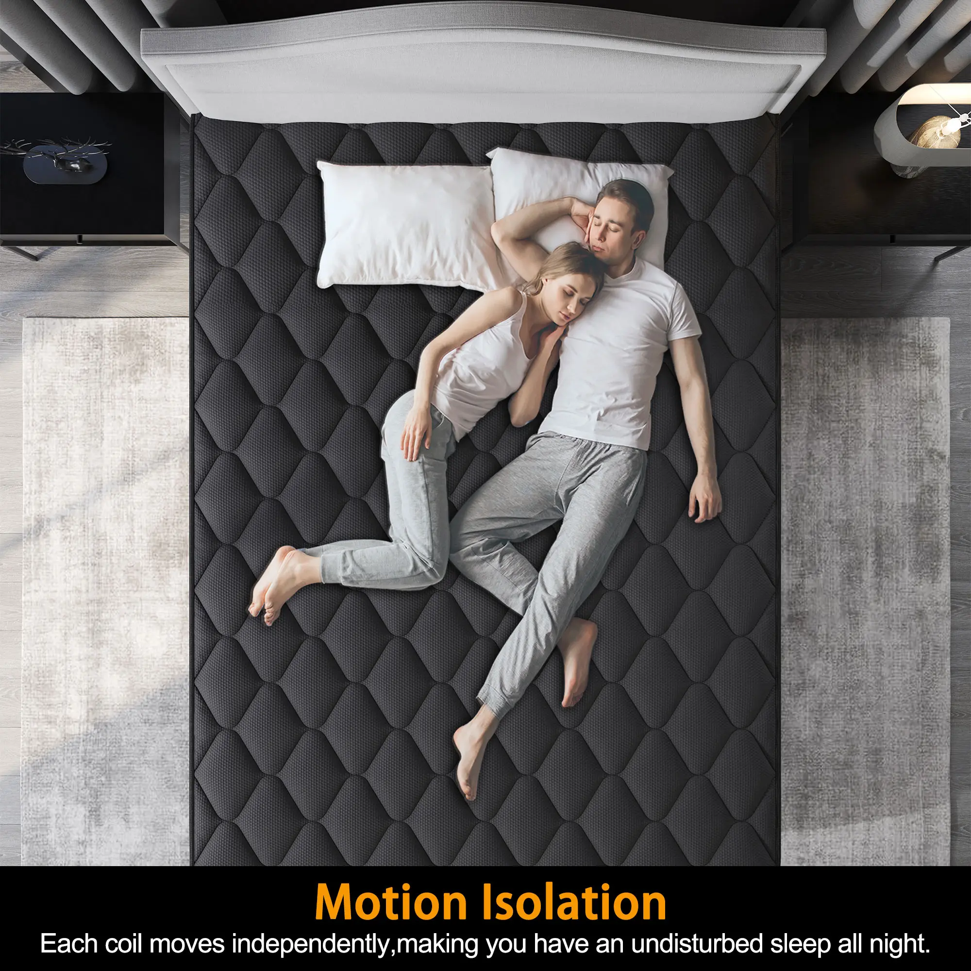 【Silent Sleep, Motion Isolated】: Enjoy a peaceful night's sleep without disturbances. Our medium firm hybrid mattress features individual pocket springs that minimize noise and motion transfer, making it perfect for couples sharing a bed. Rest assured that you will stay undisturbed throughout the night for a truly serene sleep experience.
