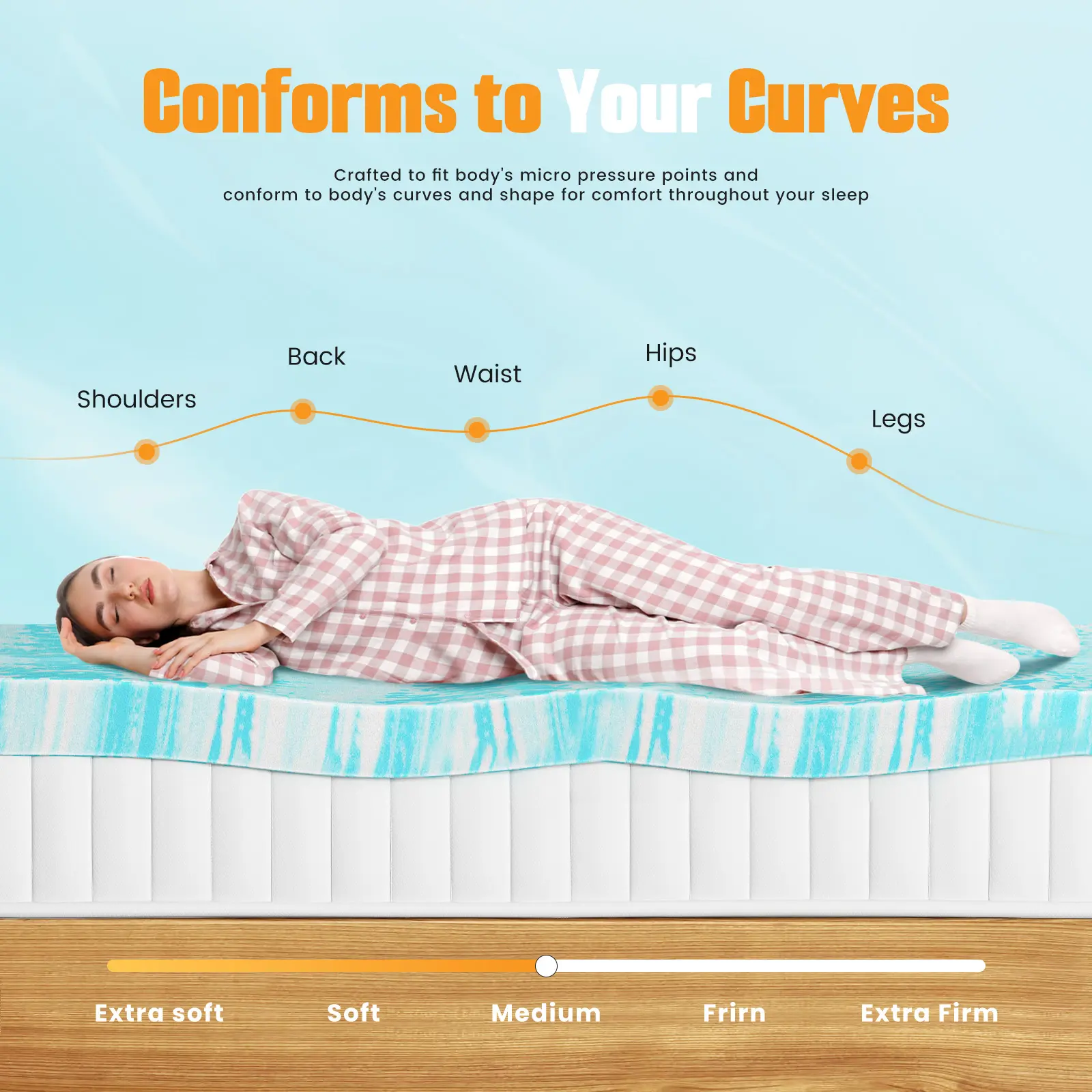 ·COOLING GEL INFUSIONS: This topper is infused with a cooling gel that helps capture and distribute heat to keep you cool and comfortable while you sleep