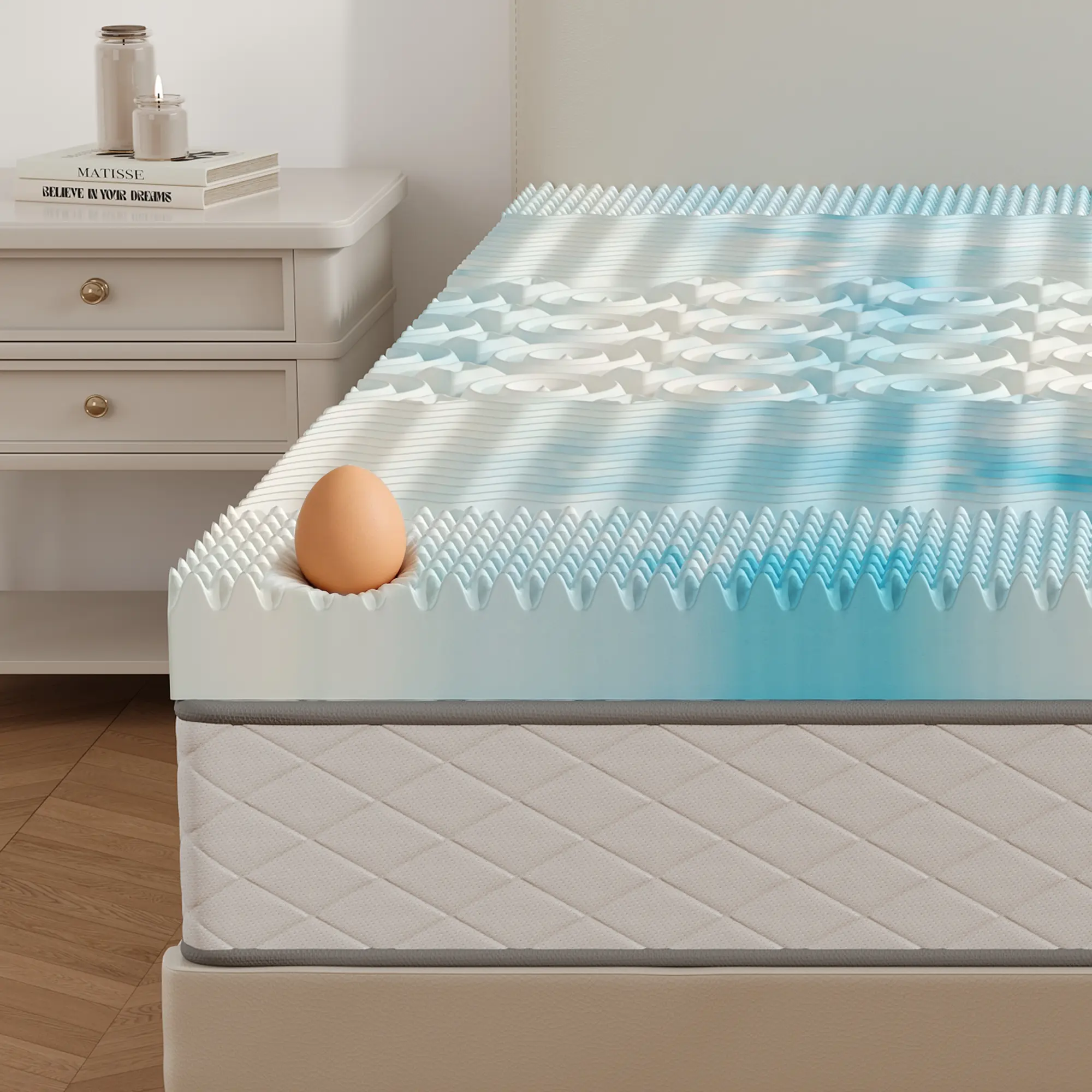 5. Memory Foam Mattress Topper, Cooling Gel Infused Pressure Relief Bed Topper for Back & Hip Pain, Soft Dorm RV Camping Mattress Pad, Blue