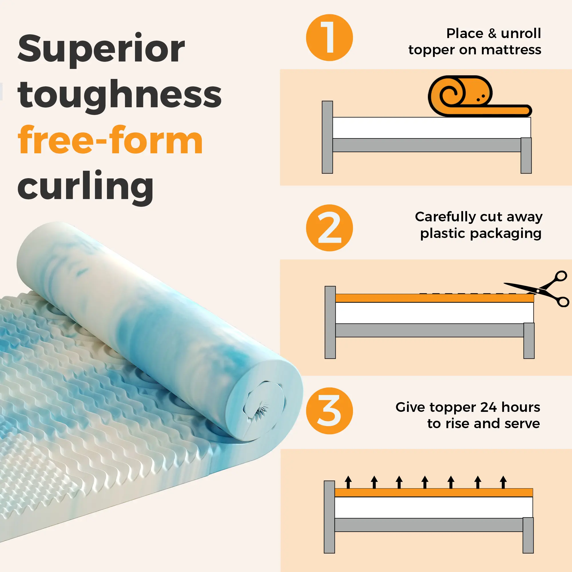 ·Cooling Gel Infused: This mattress topper is infused with cooling gel, providing a refreshing sleep experience. Perfect for back and hip pain relief. 🌟