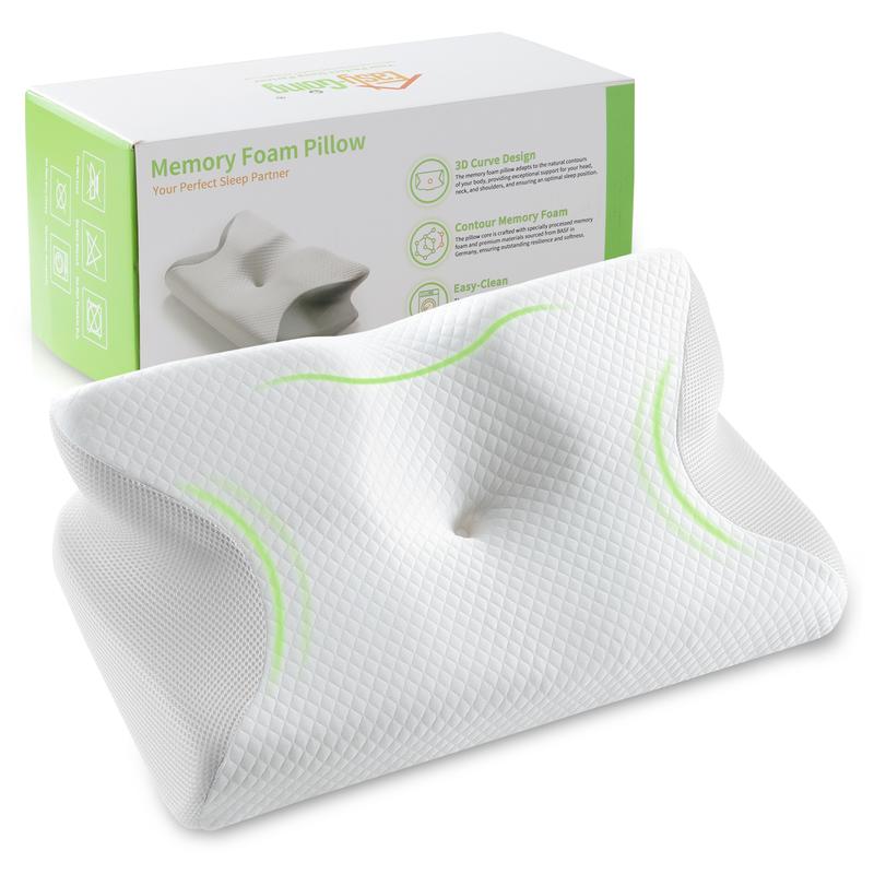 Ergonomic Design Contour Pillow: The ergonomic pillow area and specific grooves provides good support for the head and arms, while the concave design wraps around the neck curvature through safe stretching, providing all the necessary curves, contours, and angles to help relieve pressure. Neck support pillow design is more suitable for side, back, and stomach sleepers.