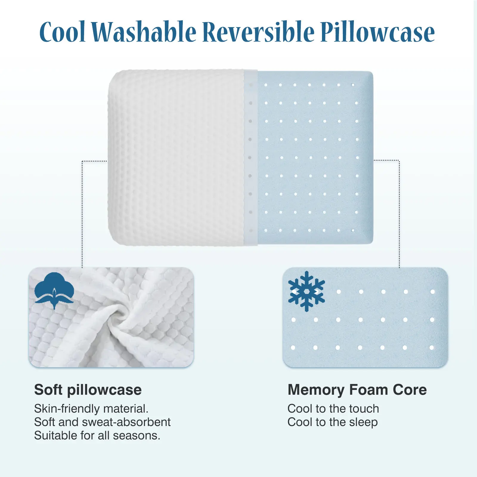 WASHABLE PILLOWCASE - This strong supportive memory foam pillow has a removable pillowcase with a smooth and durable zipper. Simply unzip, remove the pillowcase, and throw it in the washing machine. Say goodbye to dust and stains and enjoy a fresh, clean standard-size pillow every night.