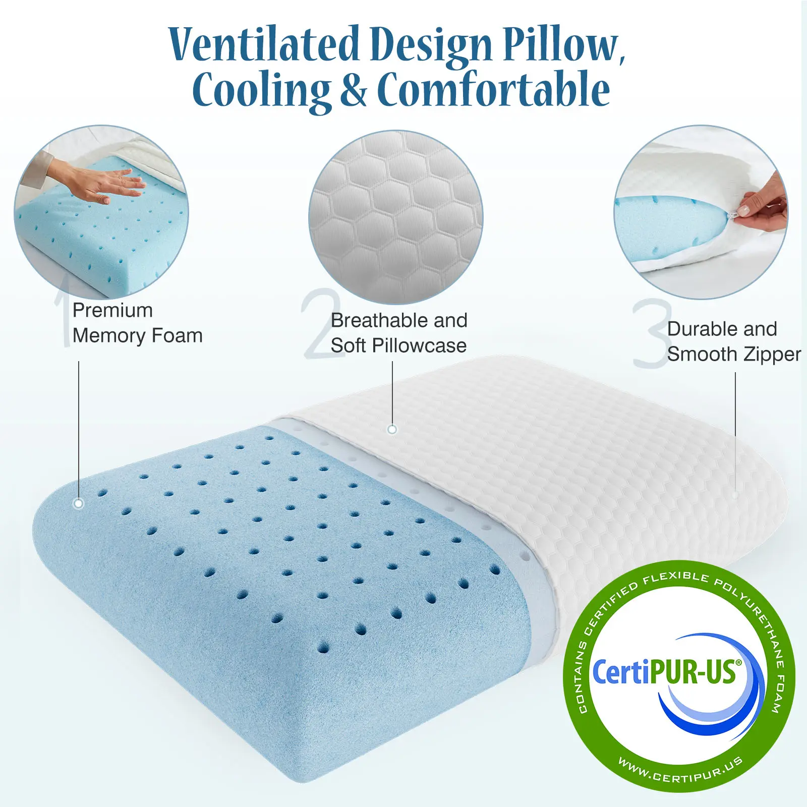 COMFORT&T VENTILATION - The honeycomb design of this collection of gel foam pillows ensures constant airflow for added ventilation, and the infused temperature-regulating gel, which helps the body dissipate heat, will keep you cool and comfortable all night long.