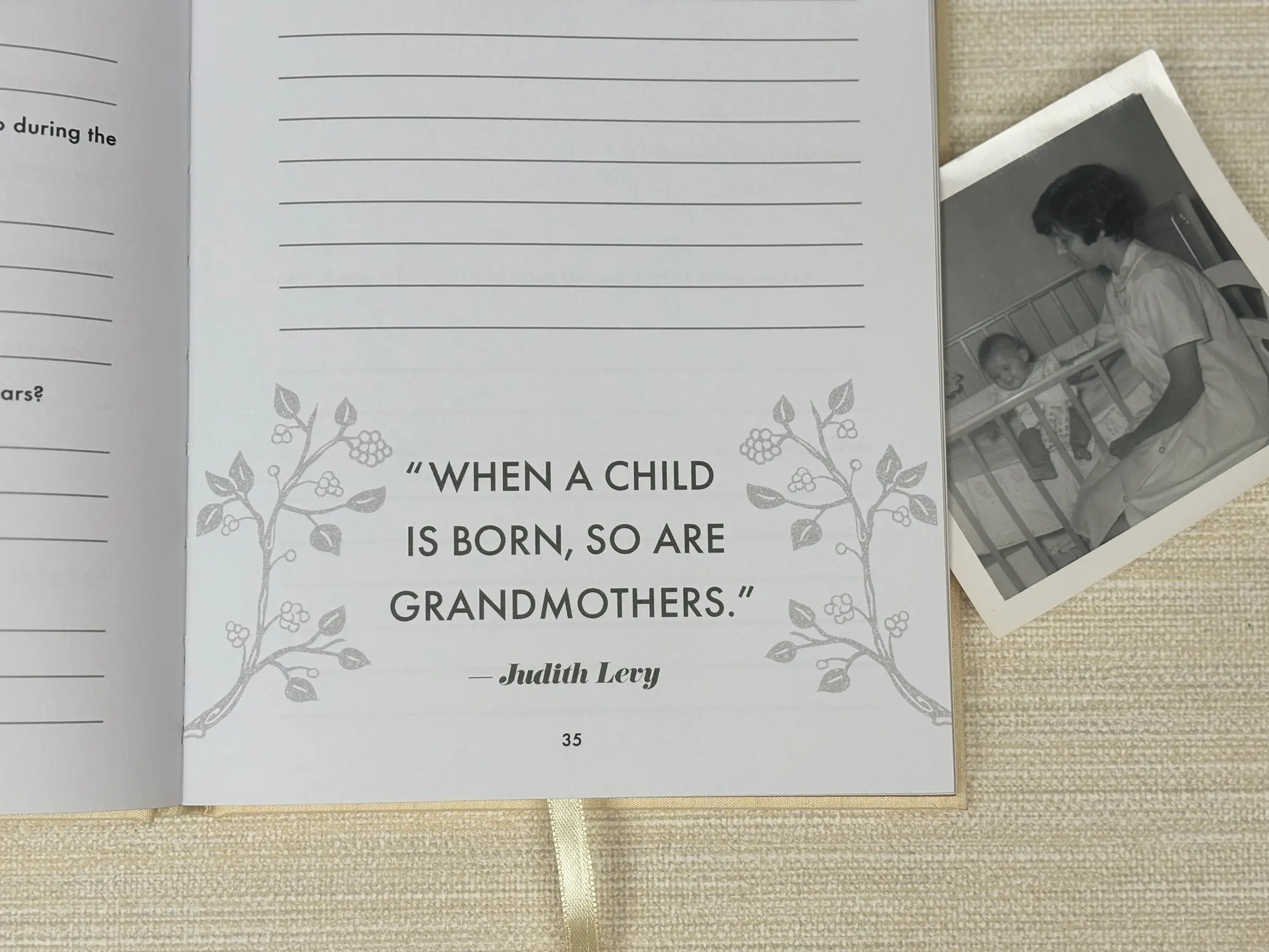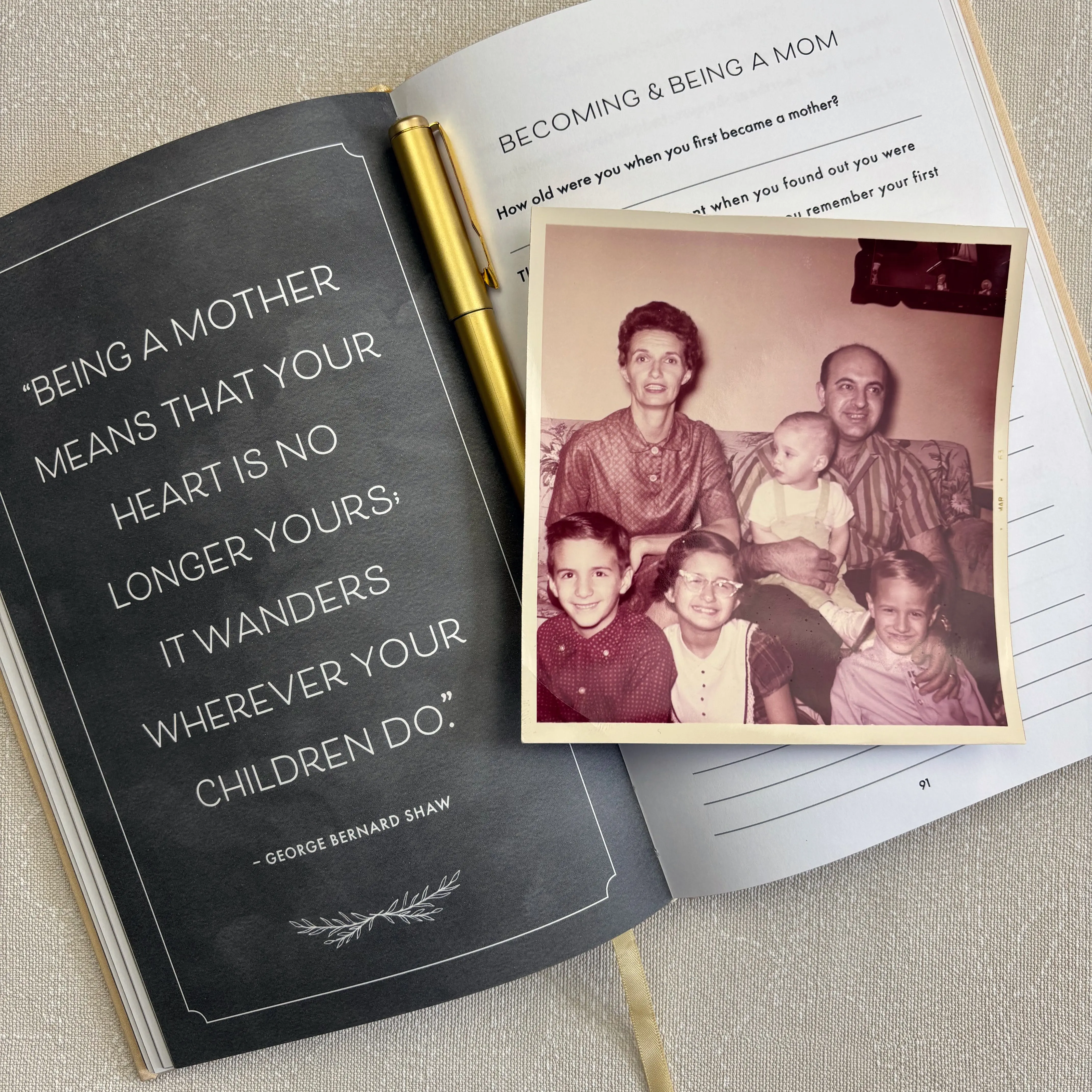 Introducing our exquisite guided memory journal, thoughtfully designed to help mothers capture and share their invaluable life stories with ease and joy. This beautiful keepsake makes the perfect gift for any special occasion, whether it's a birthday, Mother's Day, a mother-of-the-bride celebration, or Christmas.