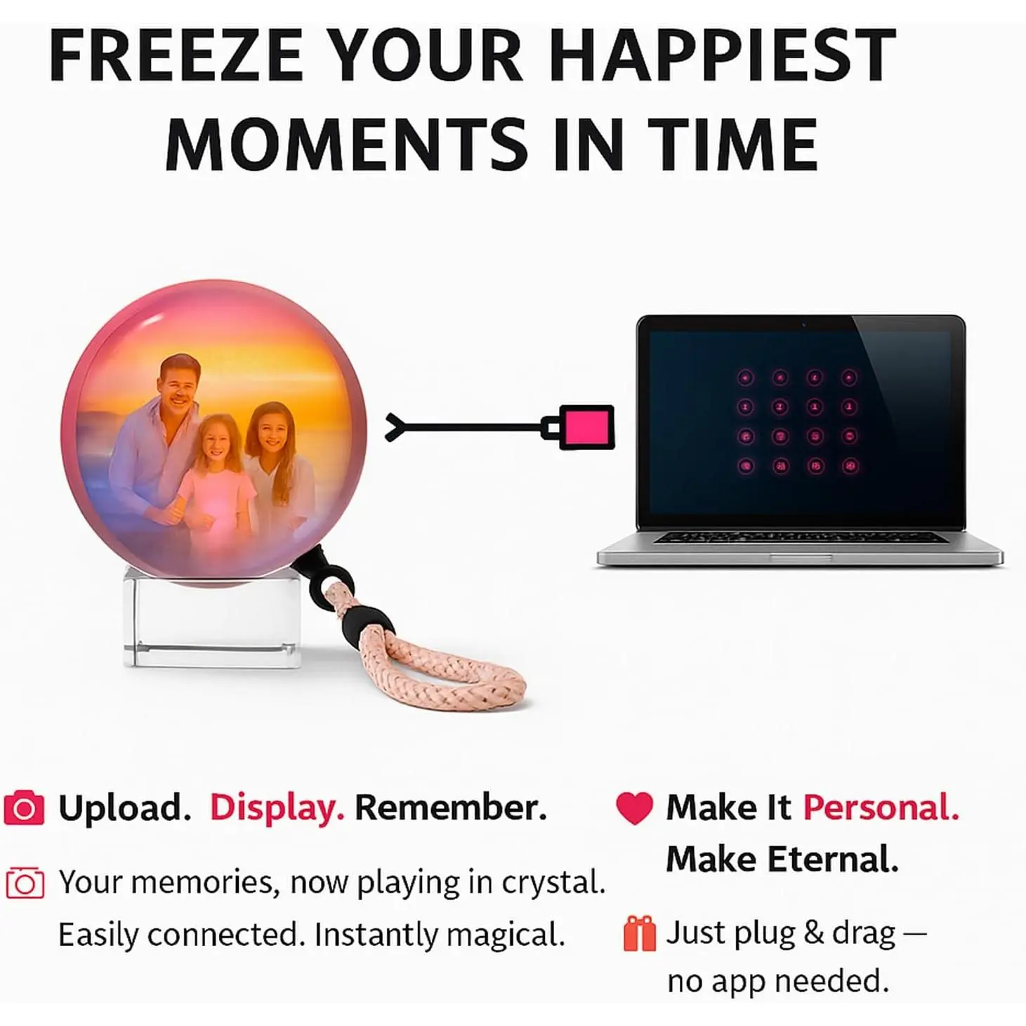 [Plays Your Special Moments]The memory sphere lamp lets you upload and play ultrasounds, love messages, family videos, or any treasured clip, turning memories into a living keepsake.Change photos at any time - Place any photo you want, easily and without restrictions.
