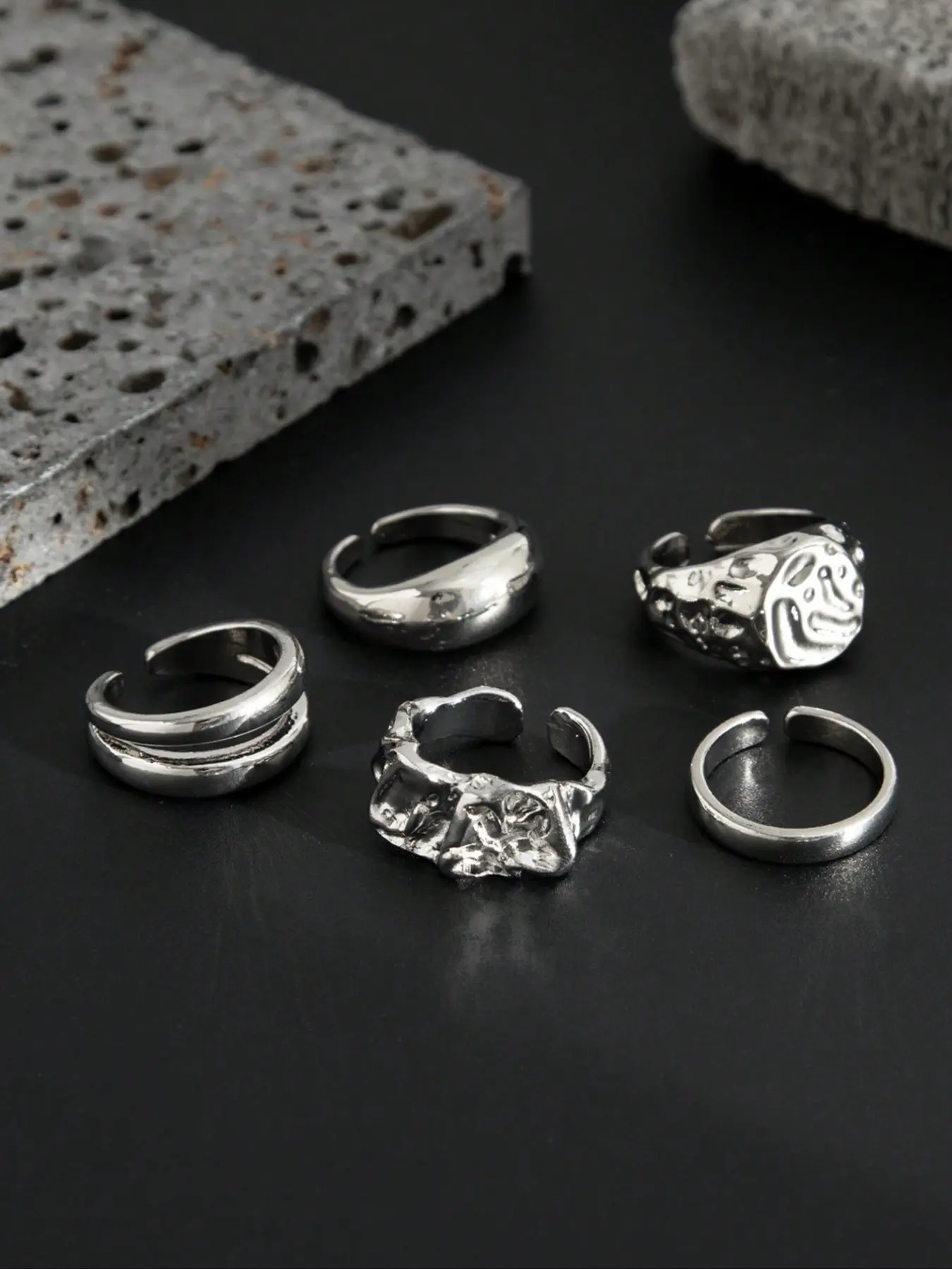Men's Punk Style Geometric Liquid Metal Set, Zinc Alloy Adjustable Jewelry, Casual Fashion Accessory for All Seasons, Stacking Ring Set, Geometric Design Ring, Statement Rings