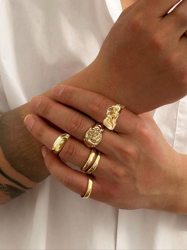 5. Men's Punk Style Geometric Liquid Metal Set, Zinc Alloy Adjustable Jewelry, Casual Fashion Accessory for All Seasons, Stacking Ring Set