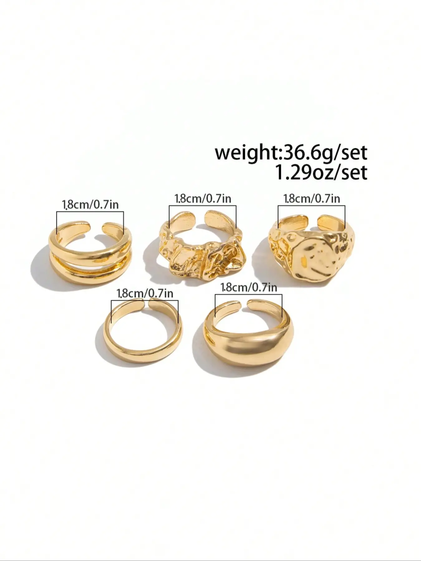 【Multi-piece Set】: The set includes five rings, allowing for versatile styling options and the ability to mix and match for various looks.