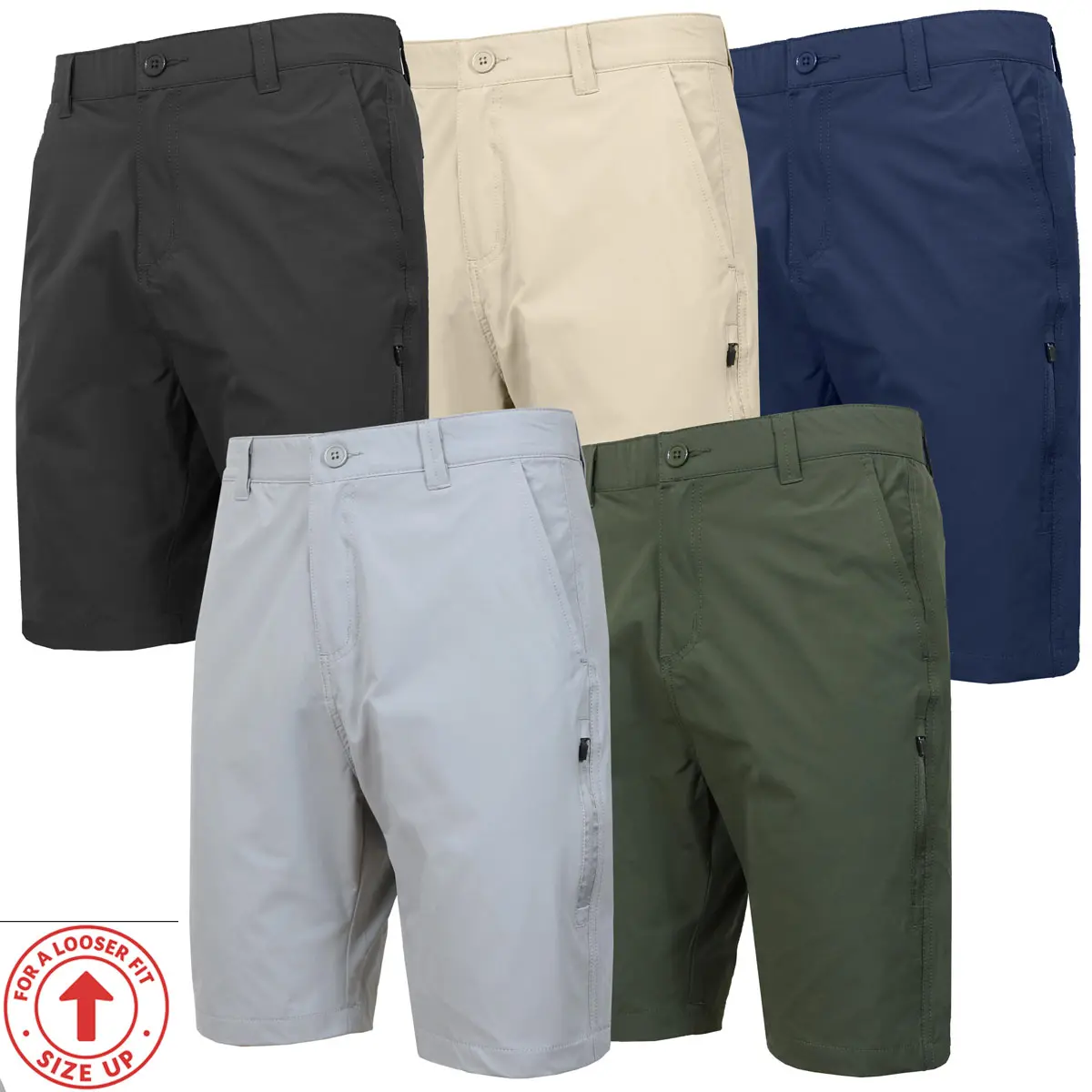 Experience performance and style with the Men’s 6-Pocket All Motion Stretch Utility Shorts. Designed with a modern-fit silhouette for everyday wear, these versatile shorts offer two regular side pockets, two secure back pockets with zipper closures, and two side cargo pockets with zipper closures. Perfect for carrying essentials securely. Tailored for a clean, versatile look, ideal for casual outings and active days.