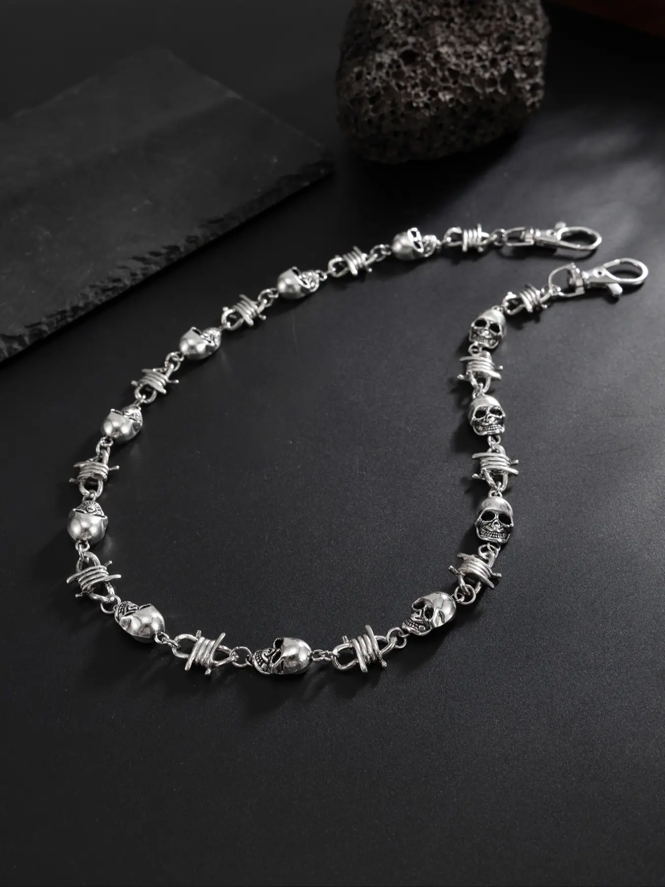 【Skeletal Theme】: Features a bold skeleton head design, making it a standout accessory for punk and alternative fashion enthusiasts.