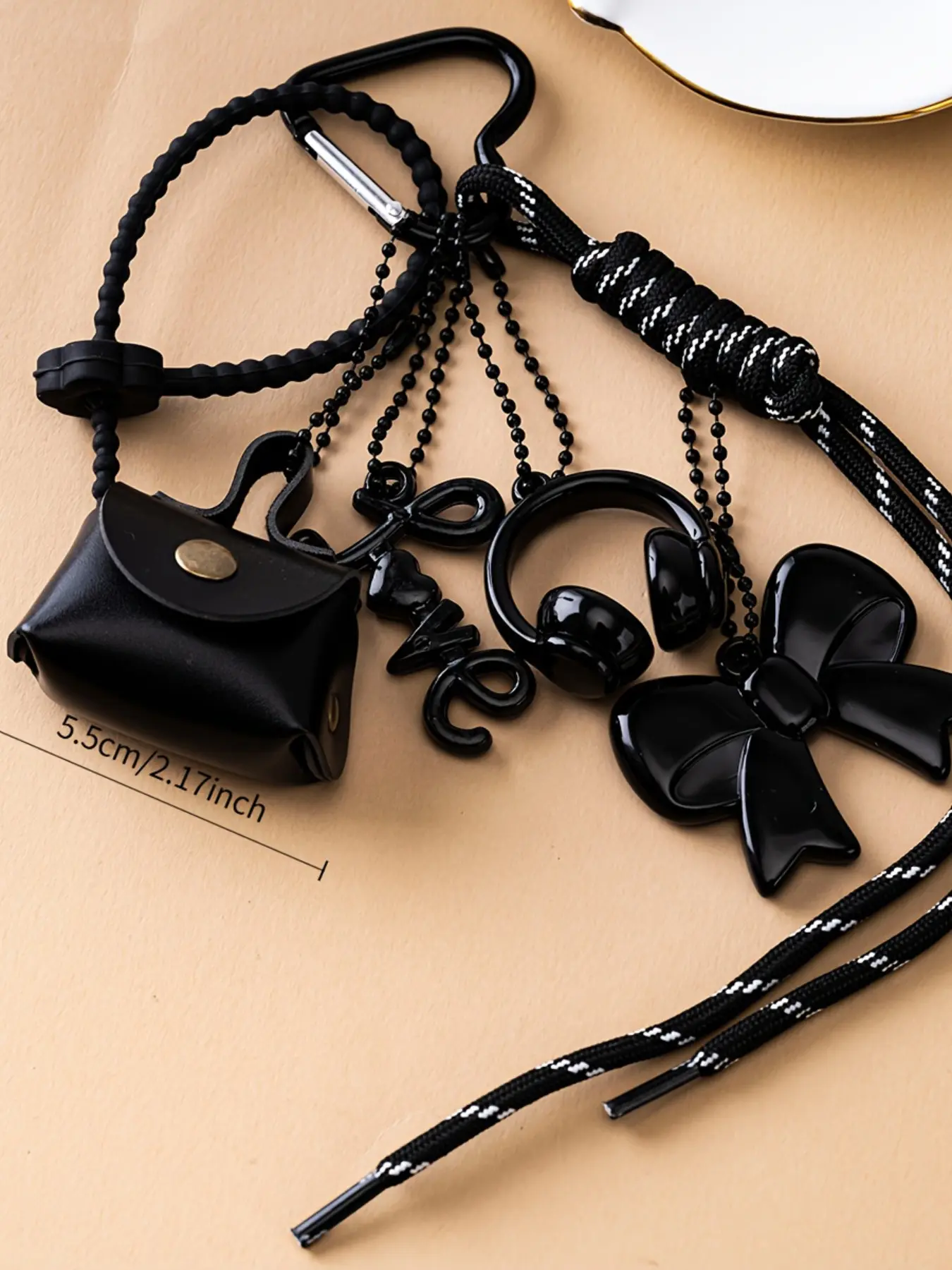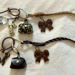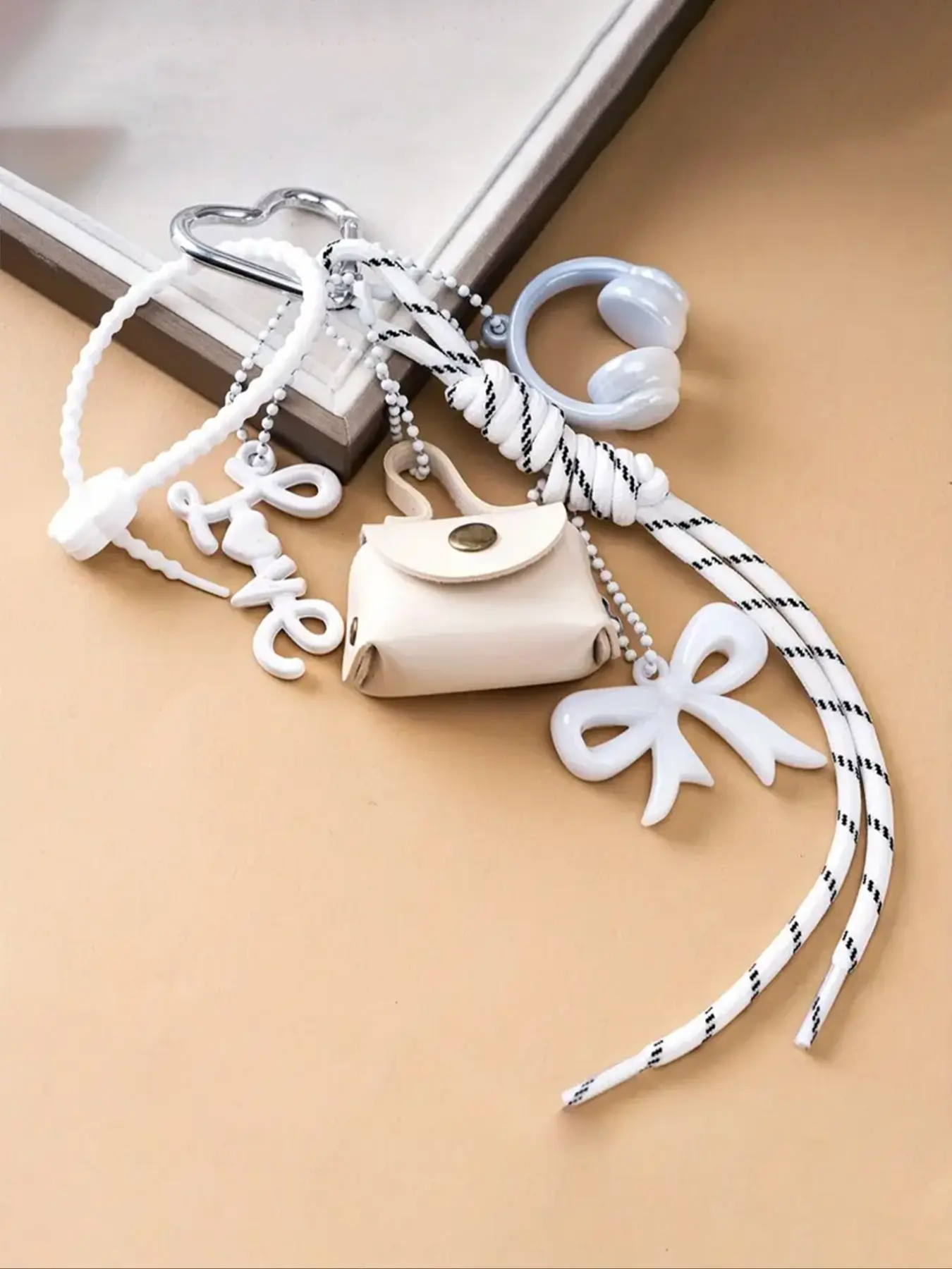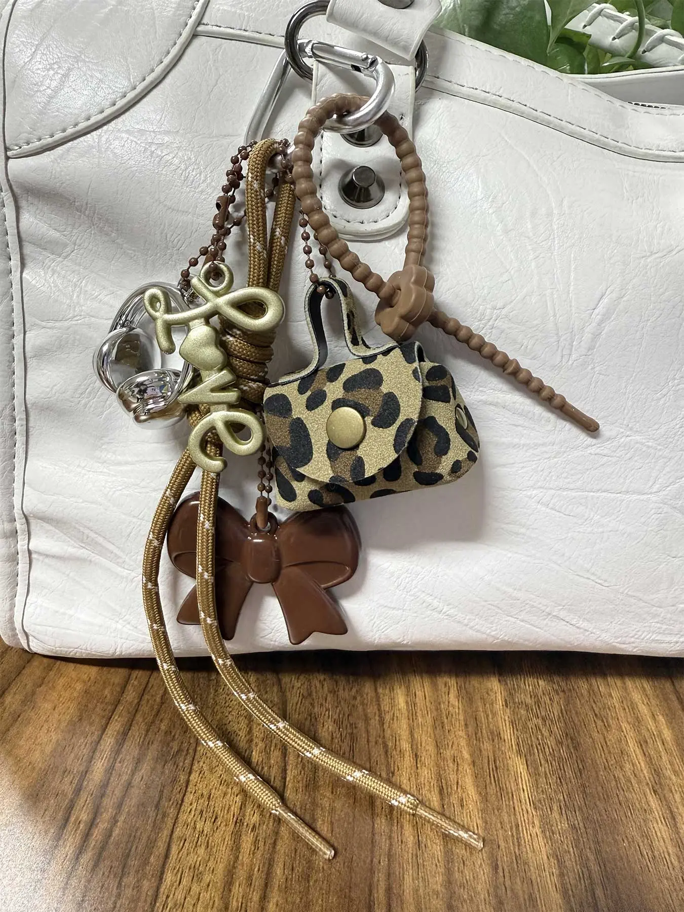 【Durable materials】: Made from PU leather(mini Leopard Bag Charm)+ABS(Silver Headphone/Coffee Bow/Gold Love Letter Charms Accessories)+Polyster(Braided Rope Charms)+Zinc Alloy(Silver Heart Keychain), providing a sturdy and long-lasting keychain that resists wear.