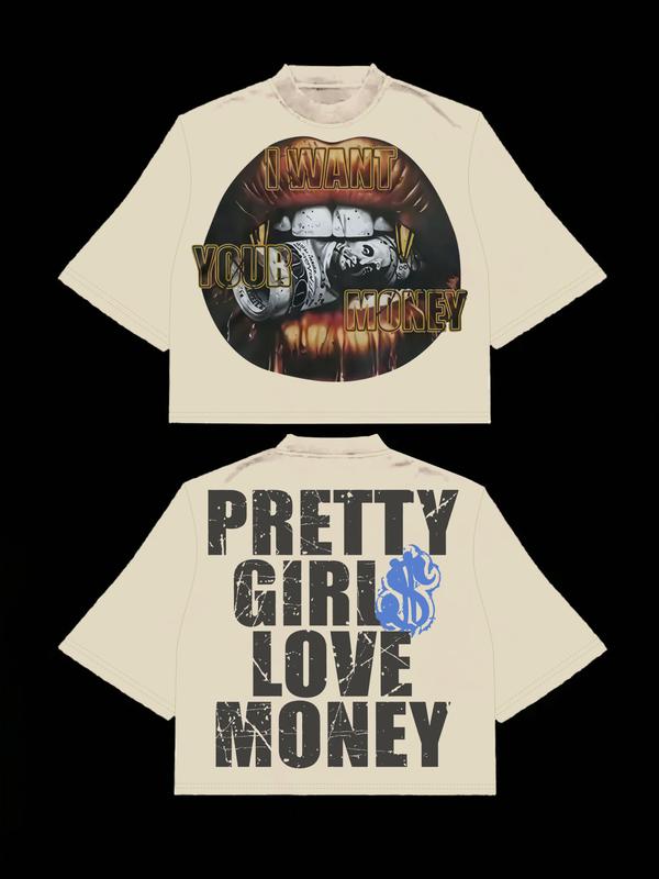 【Bold Graphic】: Features a striking large-mouth lettering print that enhances visual appeal and sets it apart from typical t-shirts.