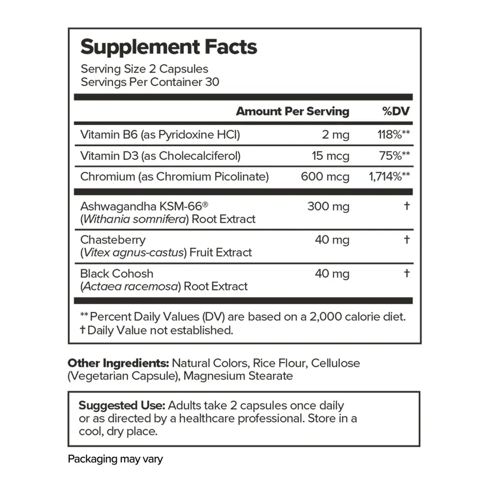 ·Clinically-Studied Ingredients for Relief: This hormone-free menopause vitamin is fortified with research-backed ingredients for natural & powerful relief. Our formula includes Ashwagandha KSM-66, which can help with occasional sleeplessness & anxiousness; Black Cohosh, which can provide relief from hot flashes & night sweats; Chasteberry, which can help reduce hormonal weight & headaches; and Vitamins D3 & B6, which the formula as a holistic menopause supplement
