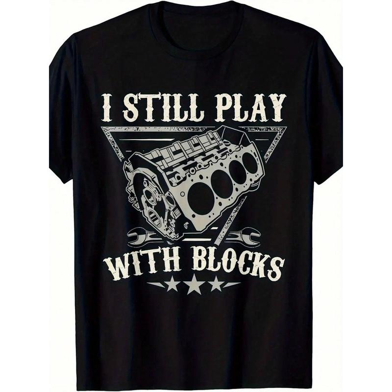 100% Cotton, I Still Play With Building Blocks, Auto Mechanic Motor Engine Pattern Printed T-Shirt, Seasonal Casual Men's T-Shirt, Round Neck Cotton Short-Sleeved T-Shirt, Sports Outdoor T-Shirt, Christmas Thanksgiving Gift, Affilante.